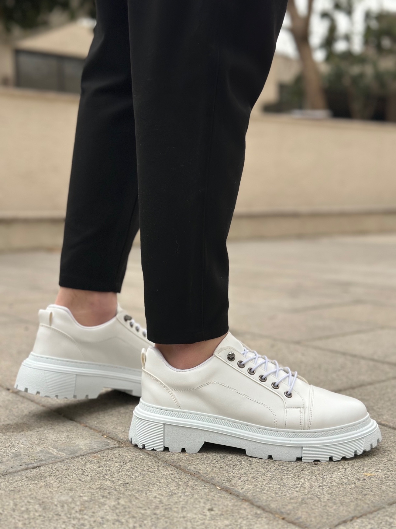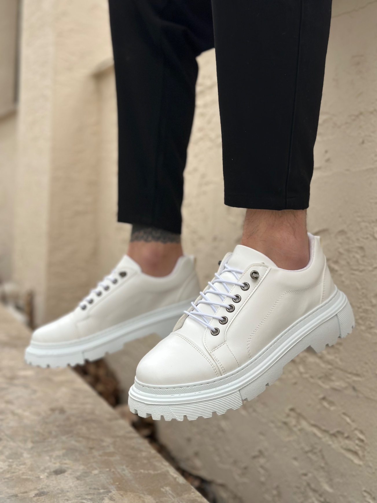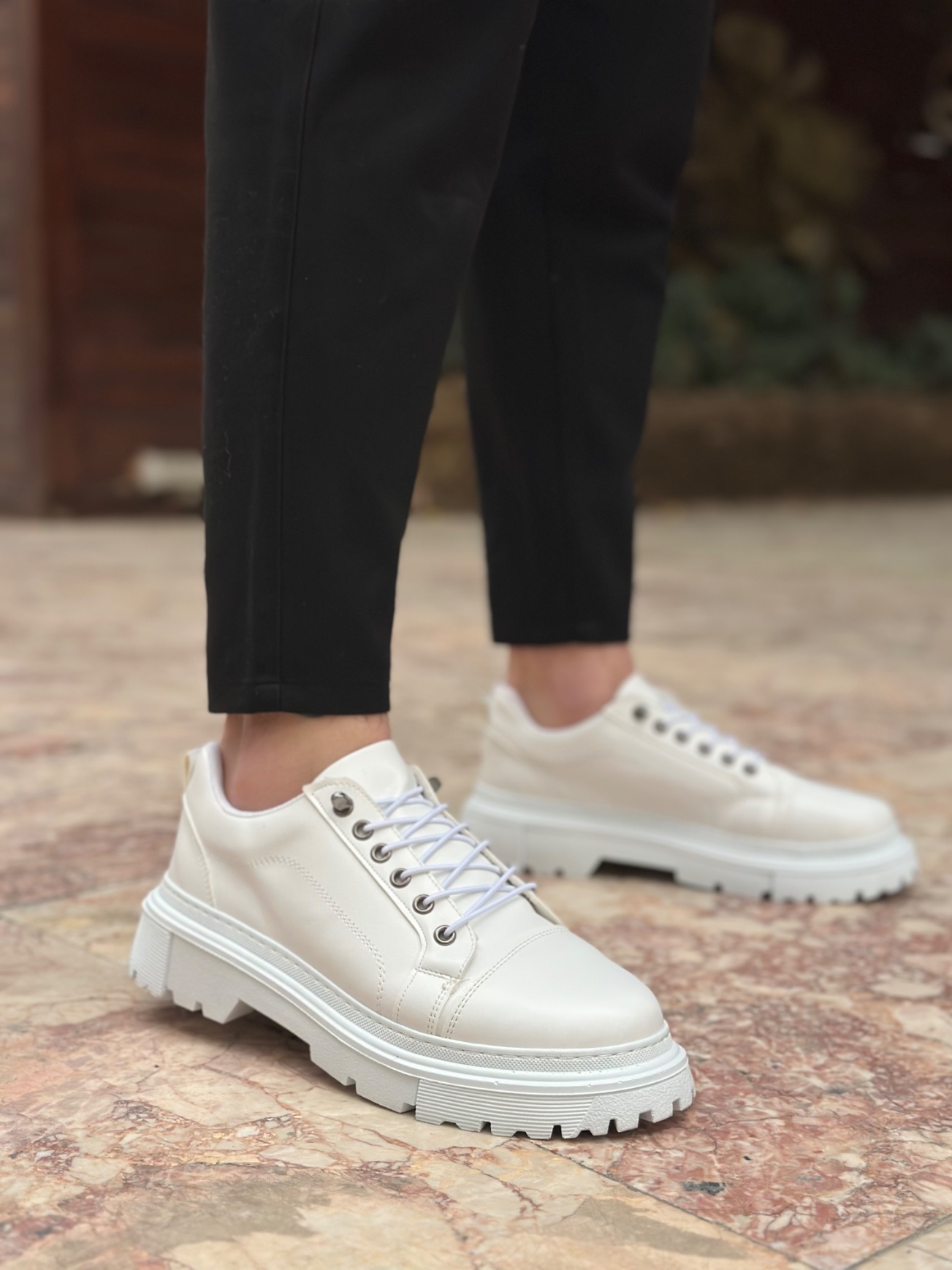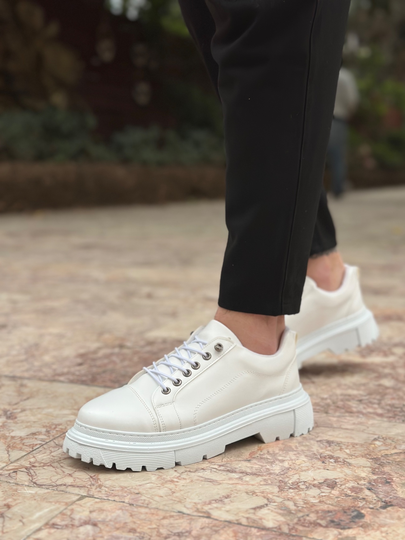 BA0245 Beyaz Akıllı Lastik Bağcık Yüksek Siyah Taban Günlük Erkek Ayakkabı