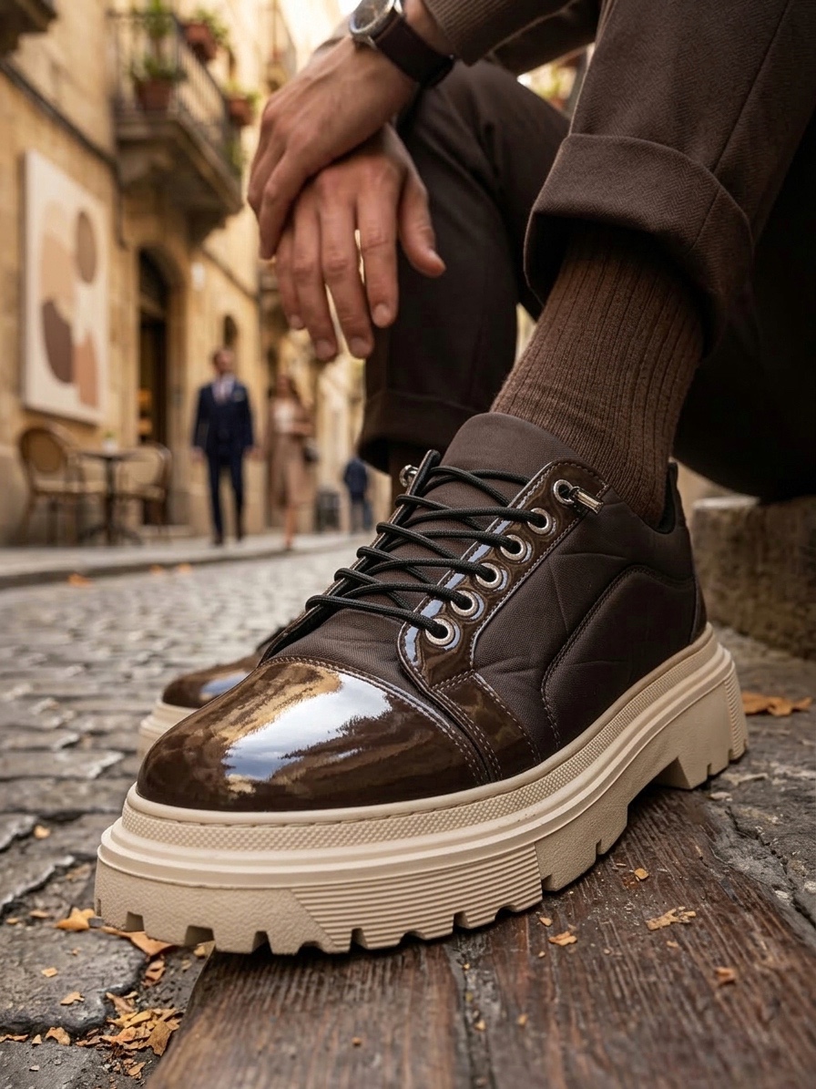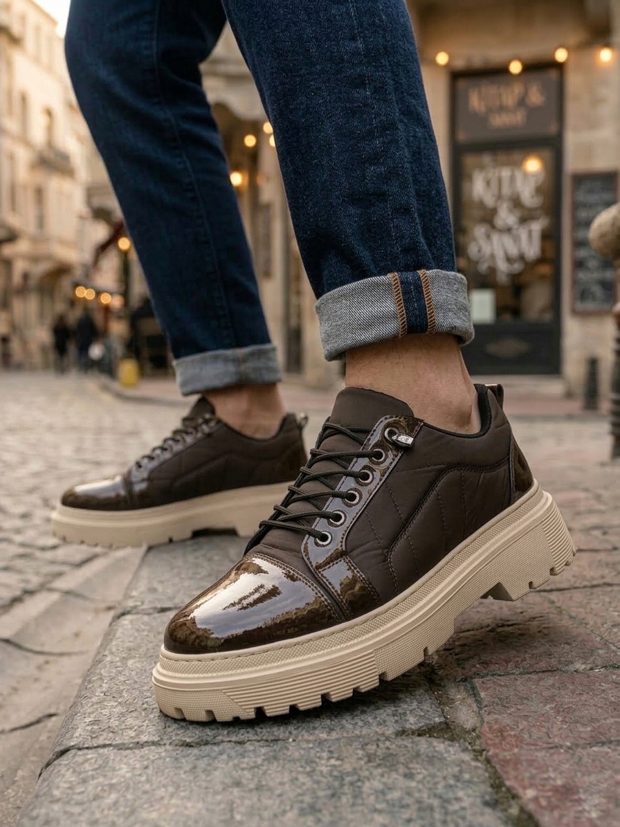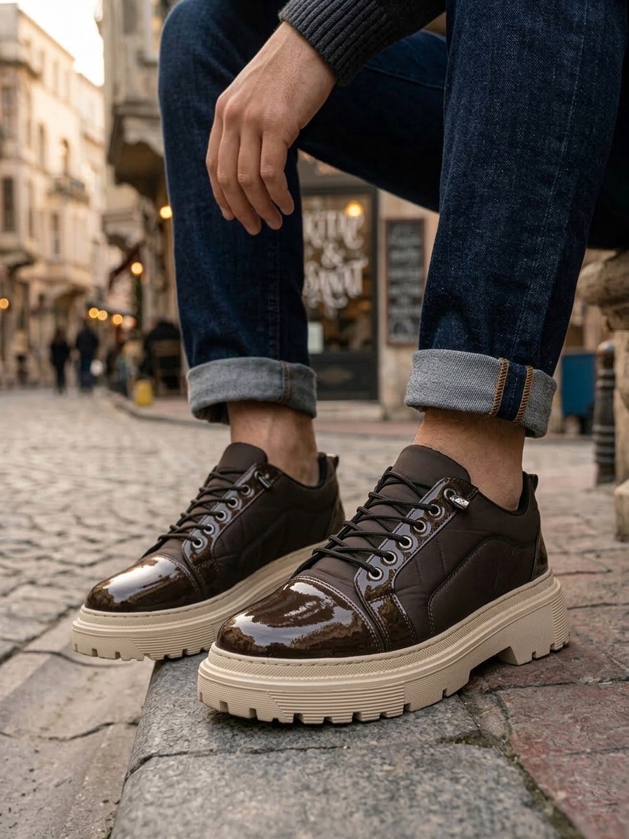 BA0245 Kahverengi Rugan Paraşüt Detaylı Akıllı Lastik Bağcık Yüksek Bej Taban Günlük Erkek Ayakkabı