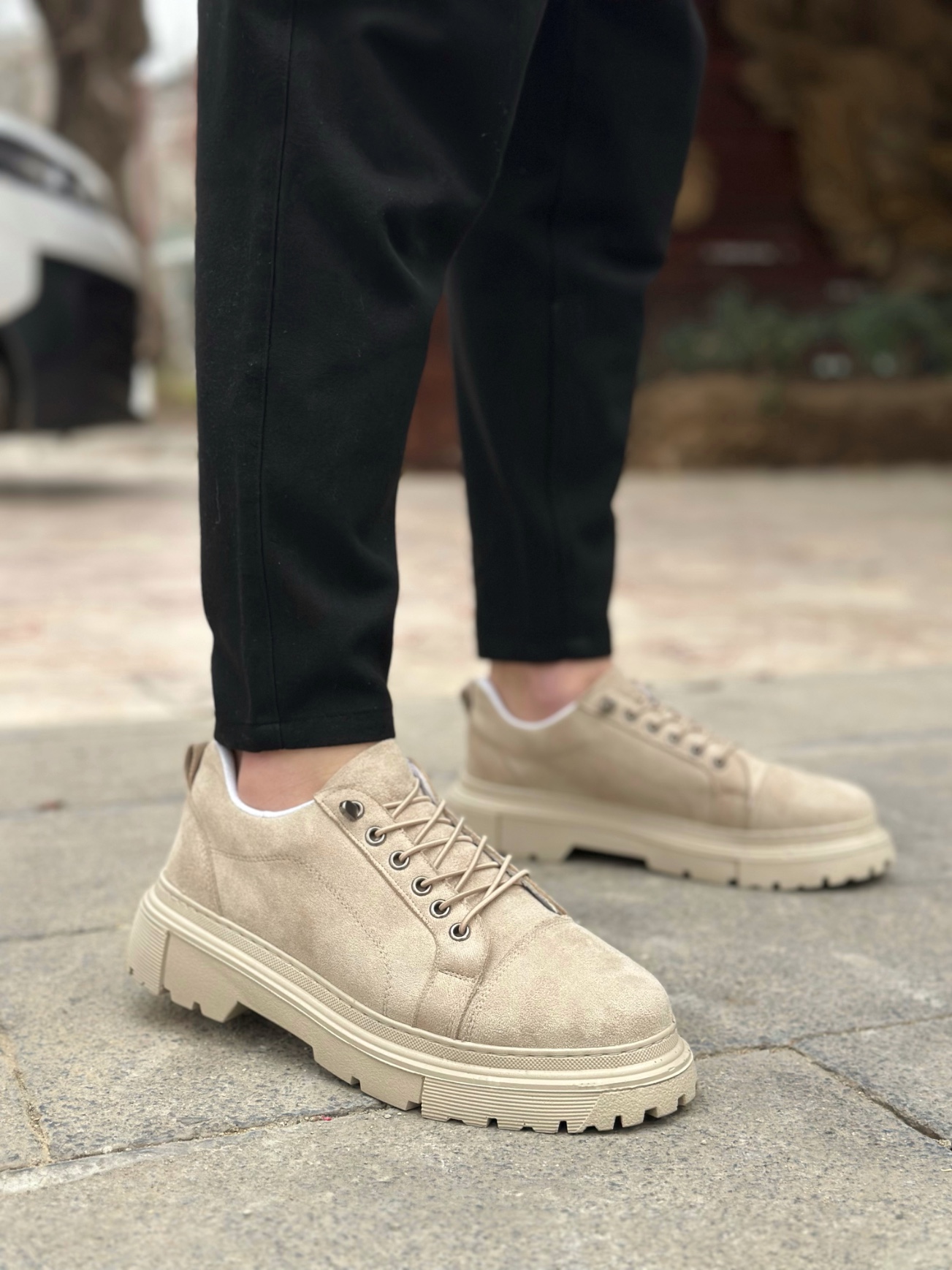 BA0245 Krem Süet Akıllı Lastik Bağcık Yüksek Taban Günlük Erkek Ayakkabı