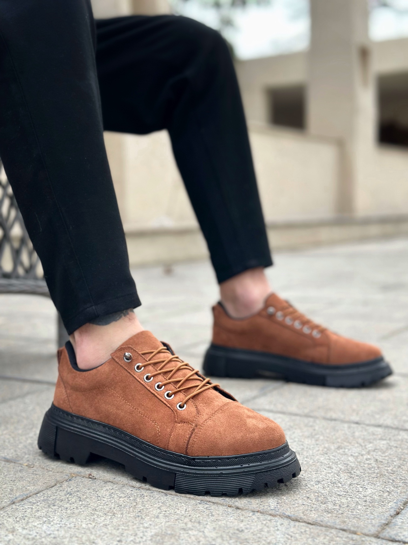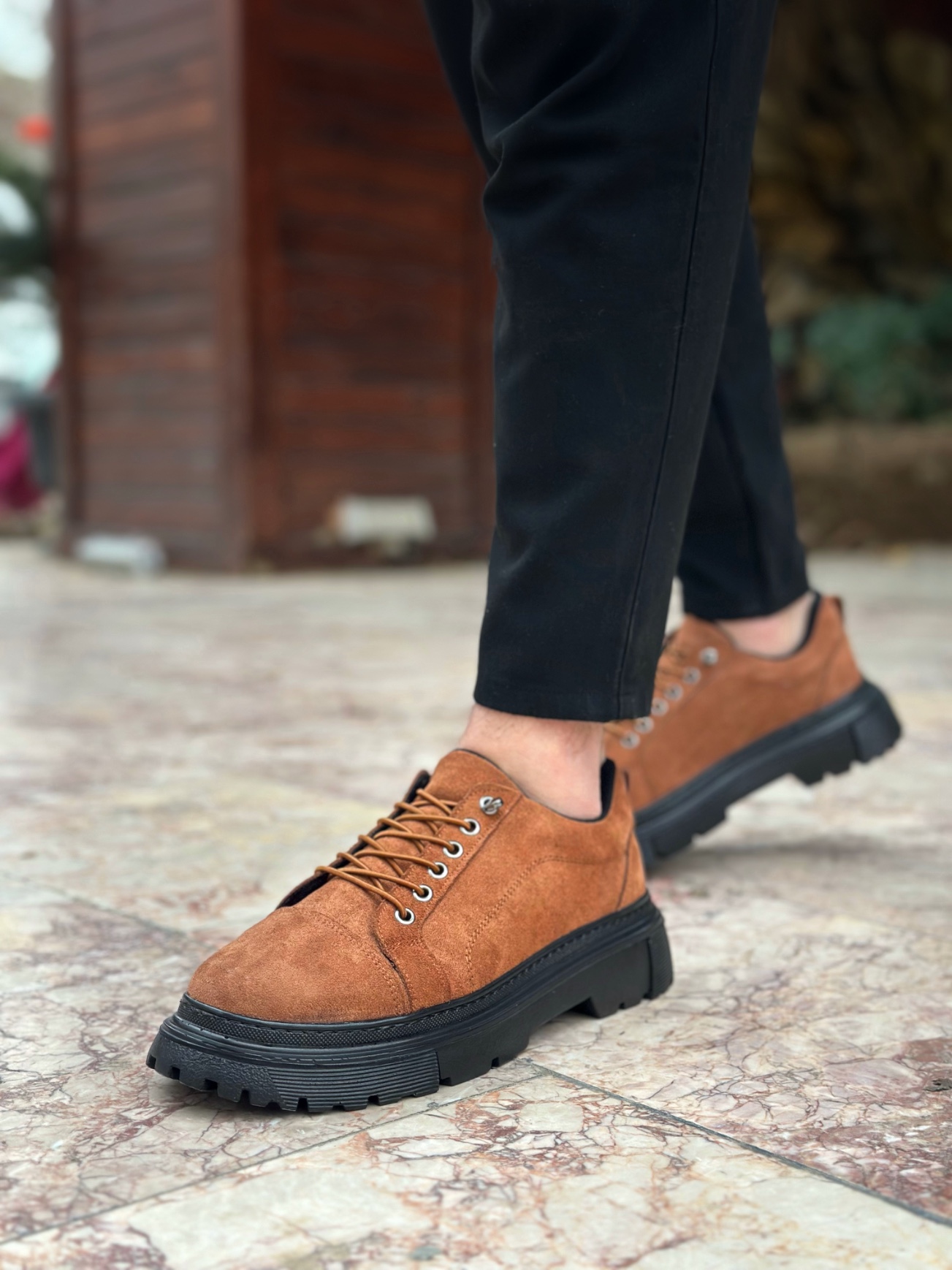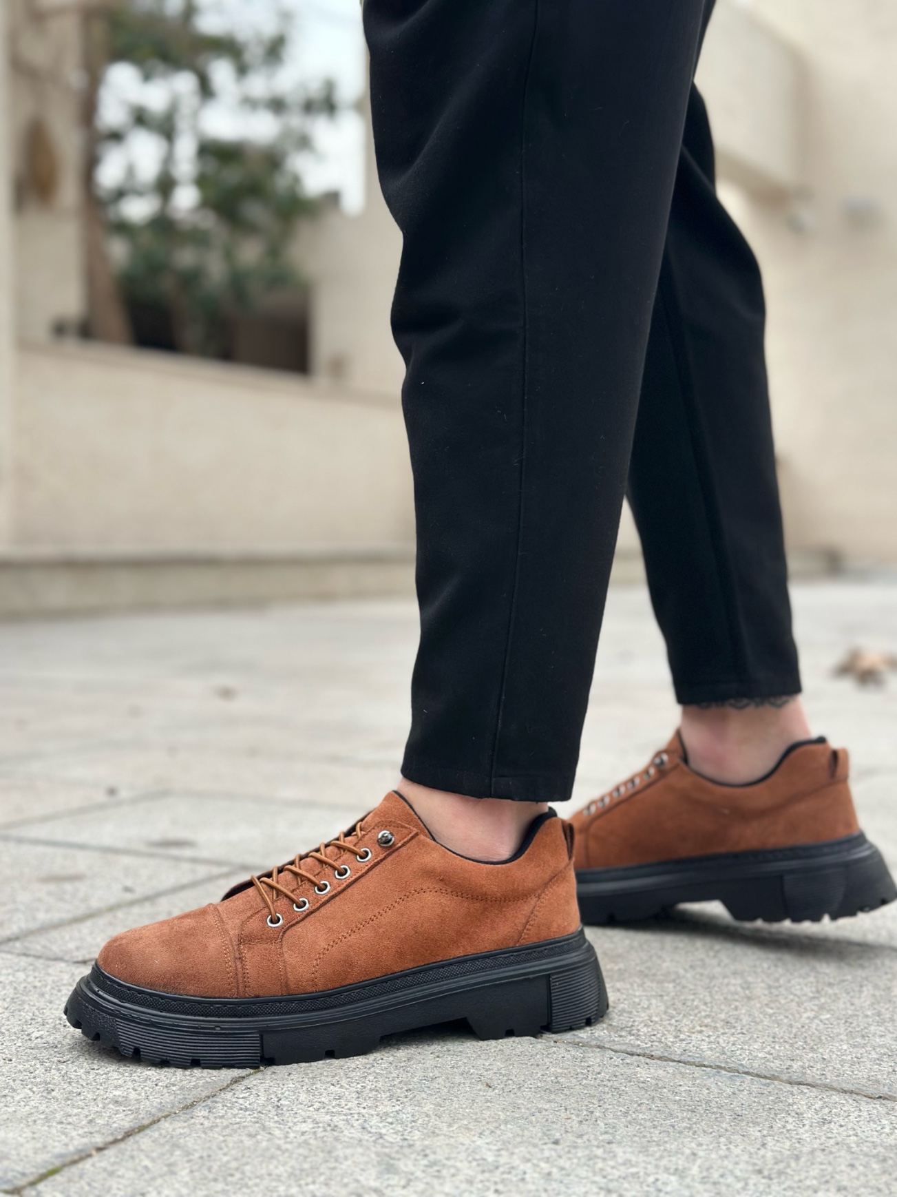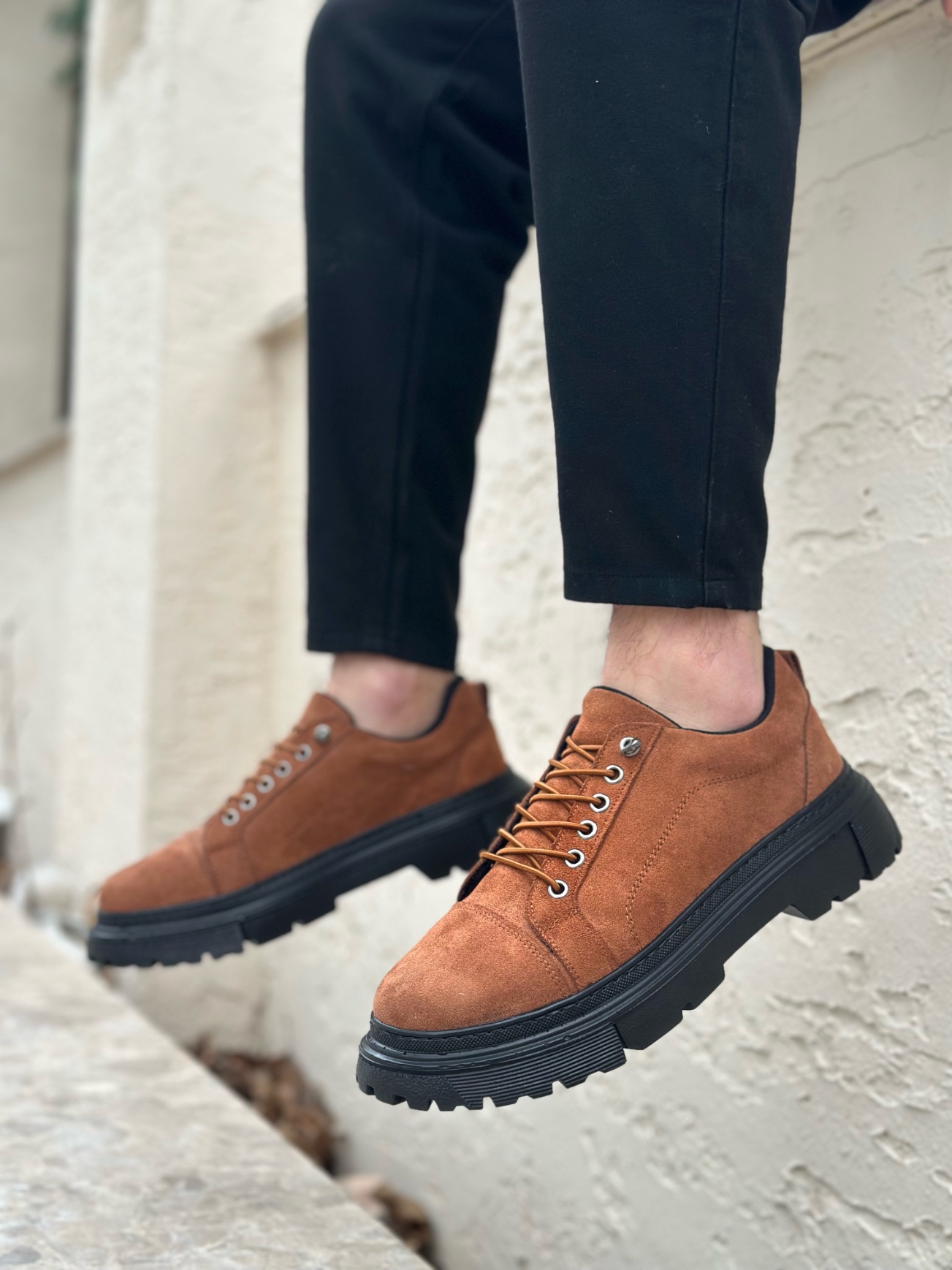 BA0245 Taba Süet Akıllı Lastik Bağcık Yüksek Siyah Taban Günlük Erkek Ayakkabı