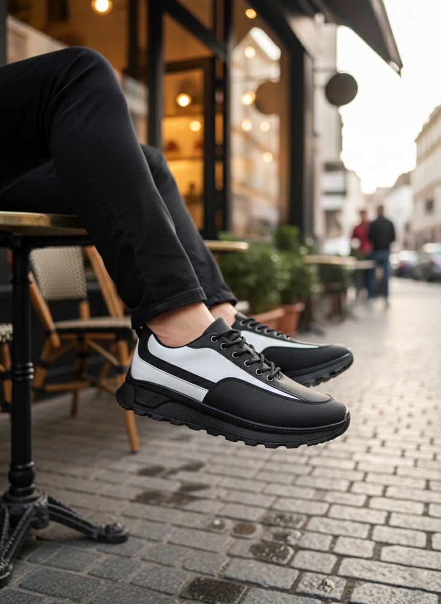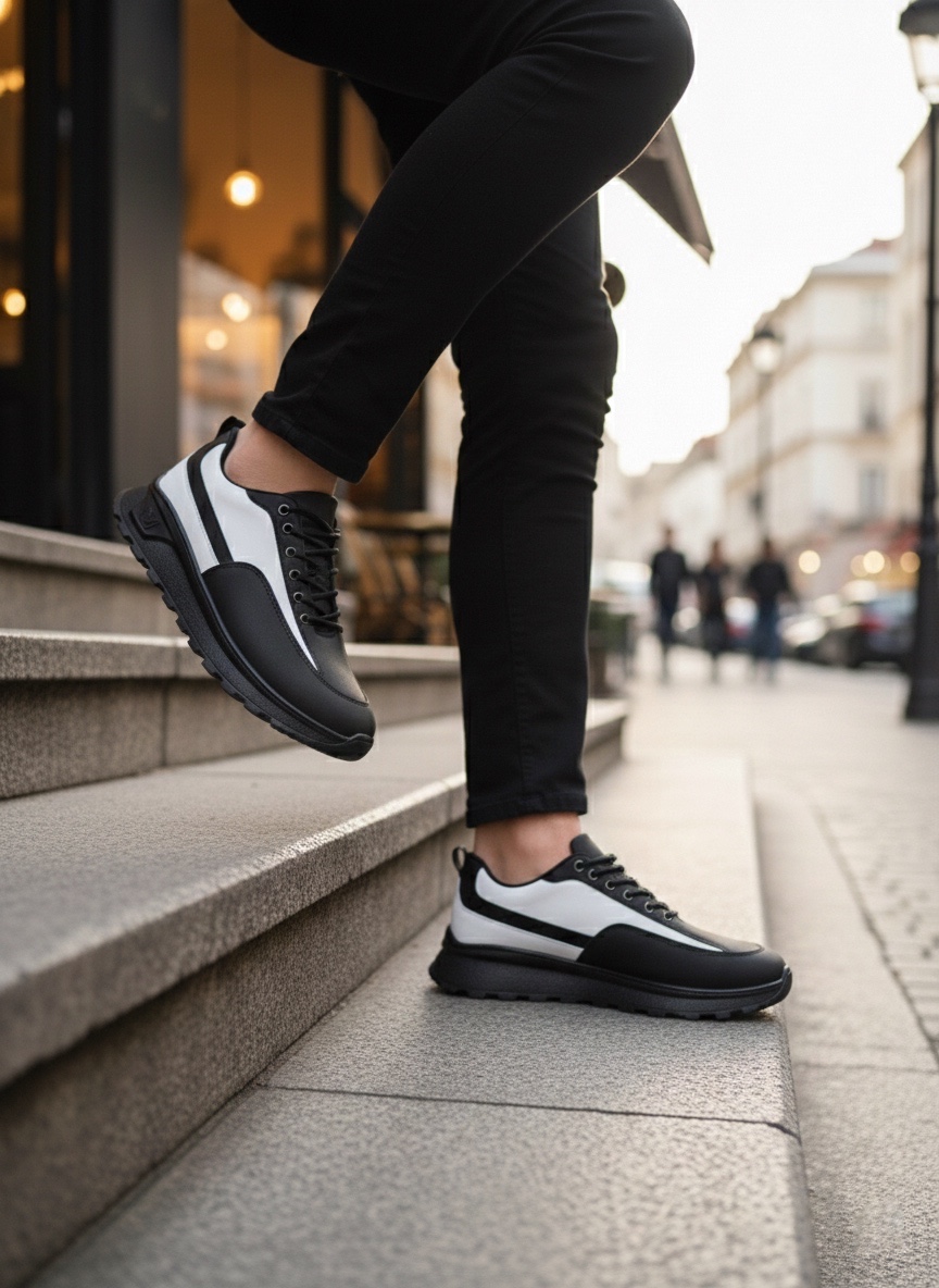 BA0246 Siyah Beyaz Parçalı Bağcıklı Yüksek Taban Günlük Erkek Ayakkabı