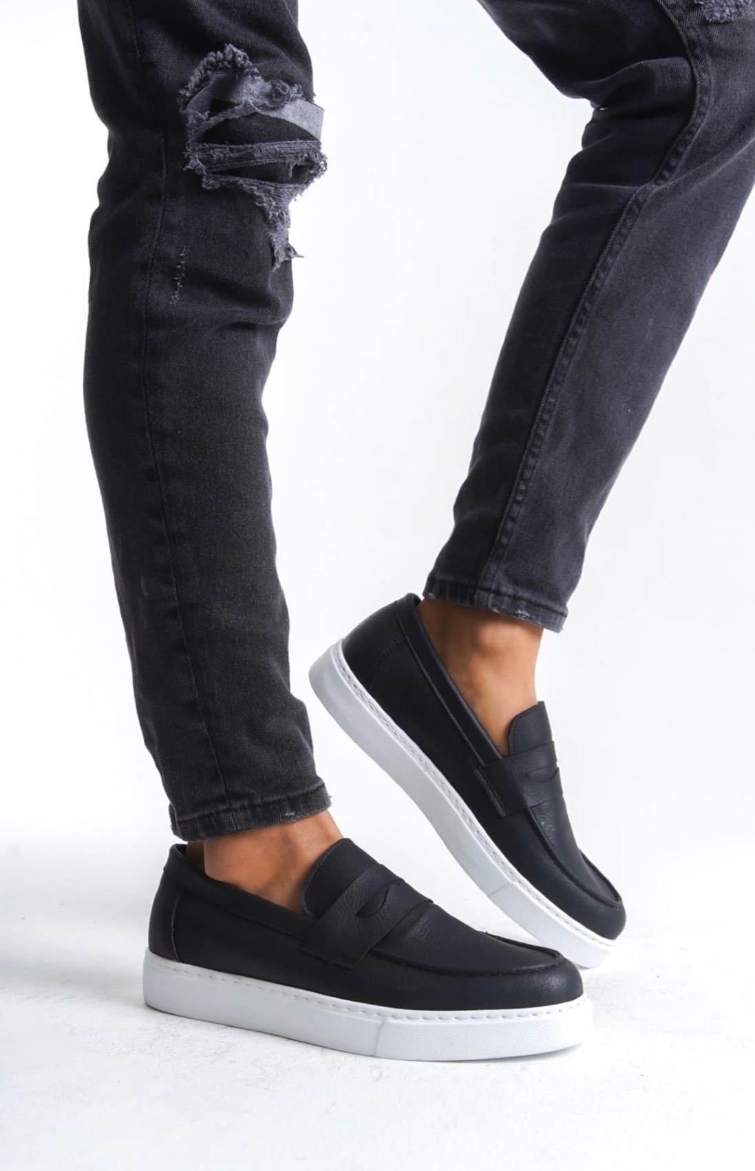 BA0580 Bağcıksız Kuşaklı Yüksek Siyah Beyaz Taban Erkek Ayakkabı
