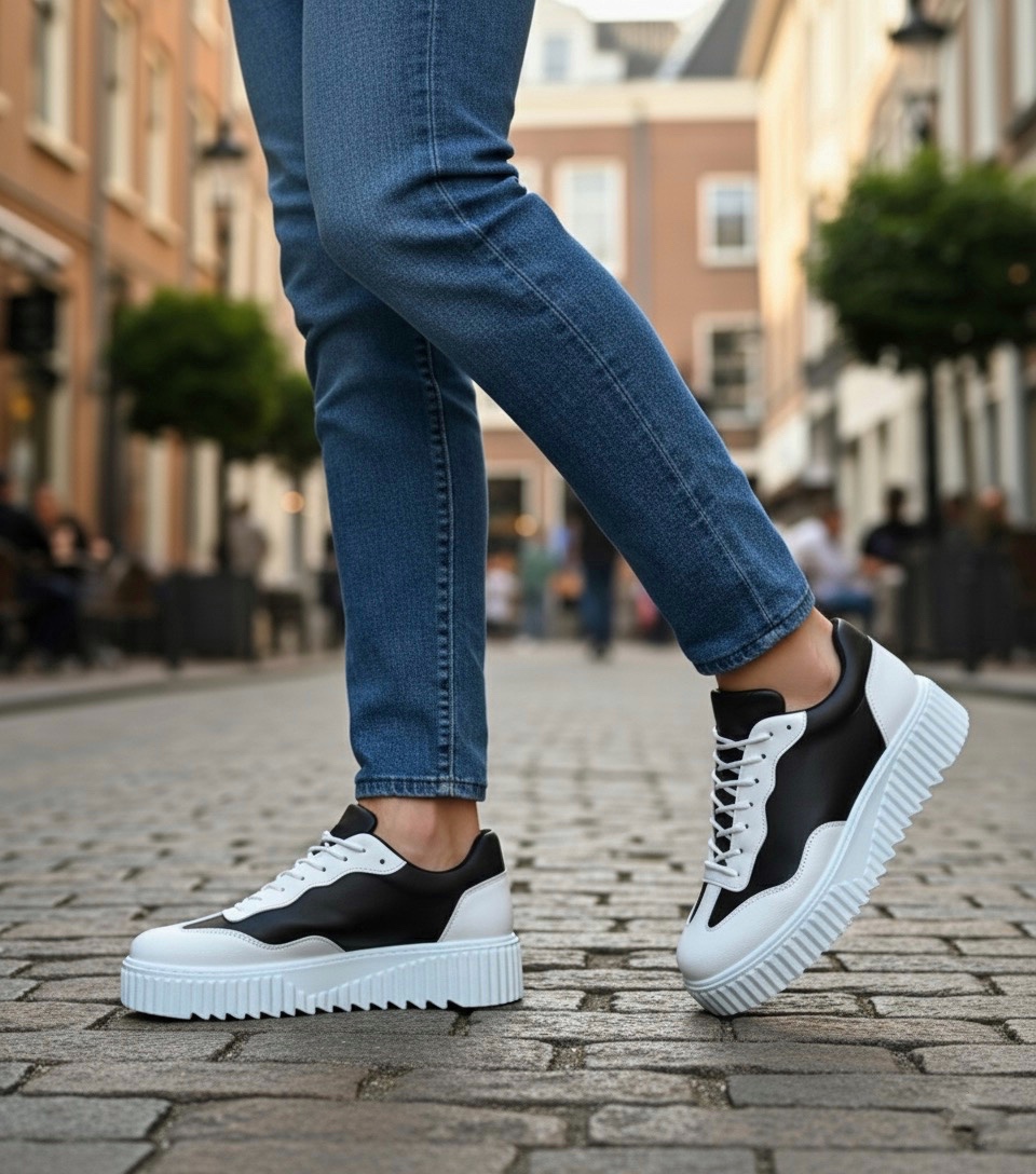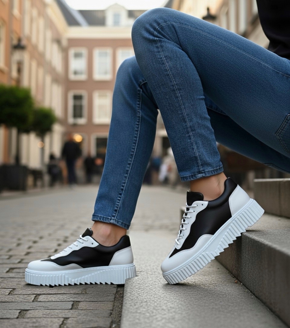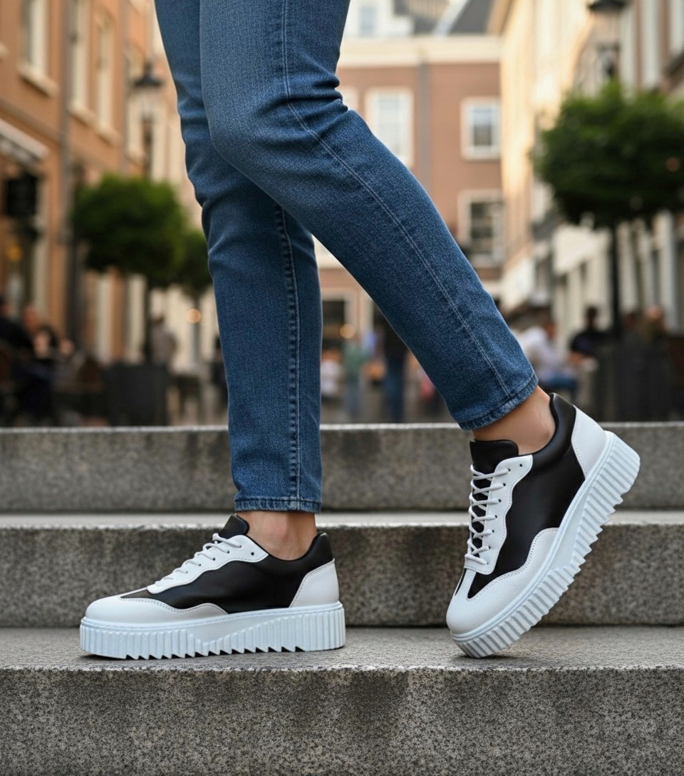 BA0802 BOA Siyah Renk Beyaz Parçalı Yüksek Taban Erkek Günlük Ayakkabı