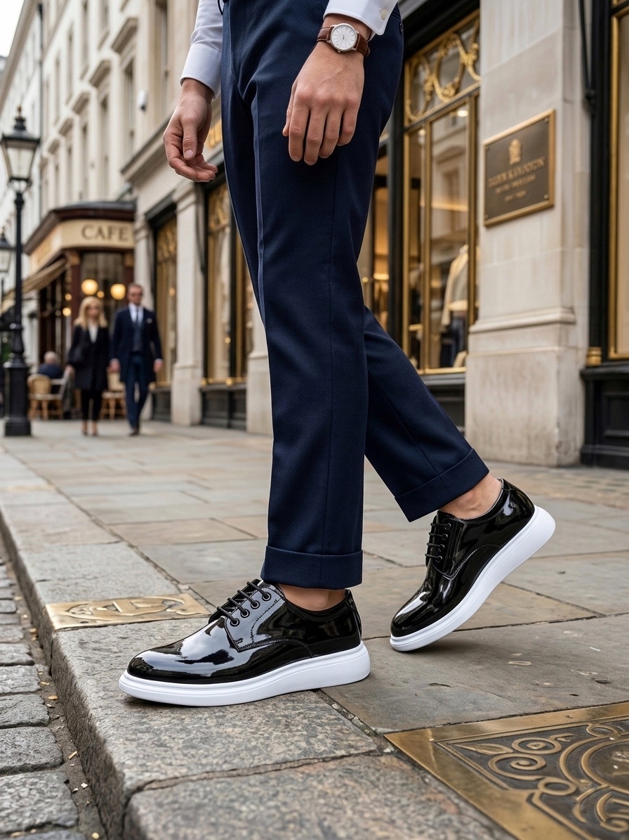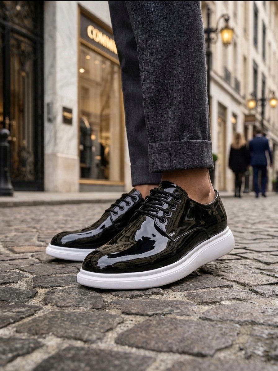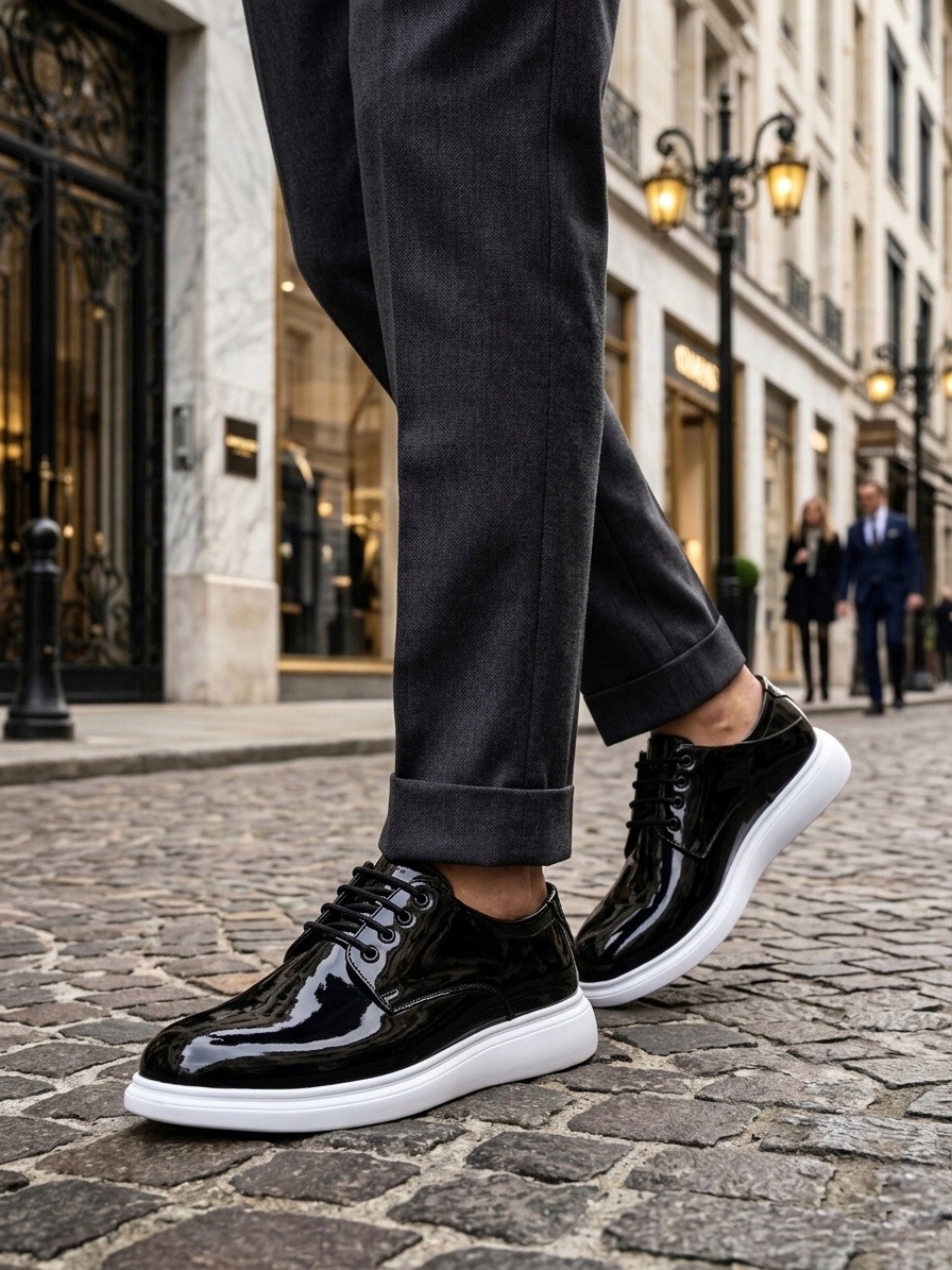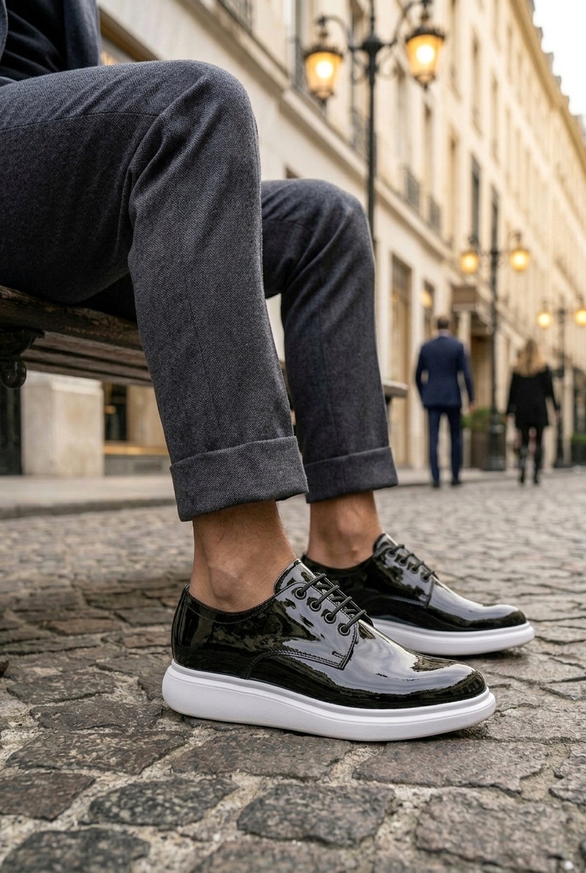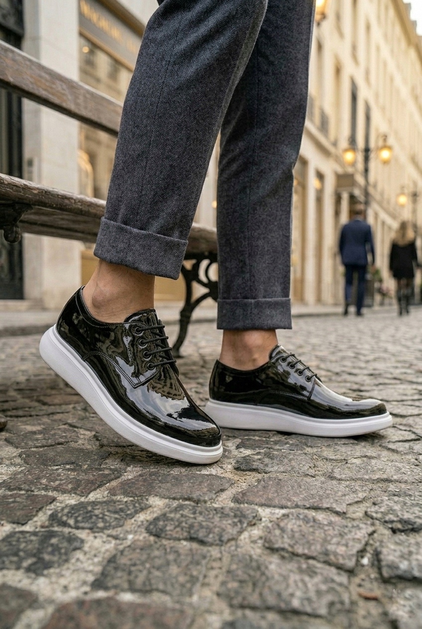 BA0003 Siyah Bağcıklı Rugan Beyaz Taban Erkek Klasik Ayakkabı