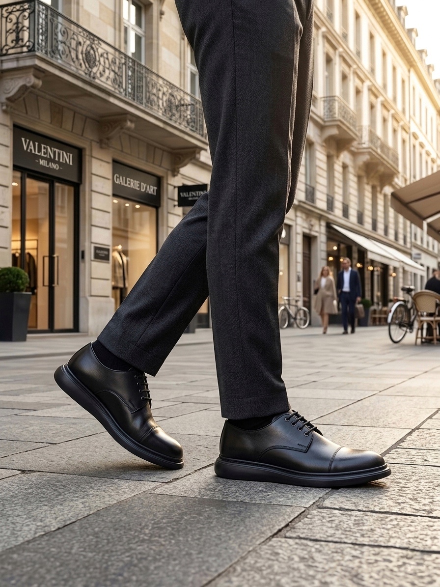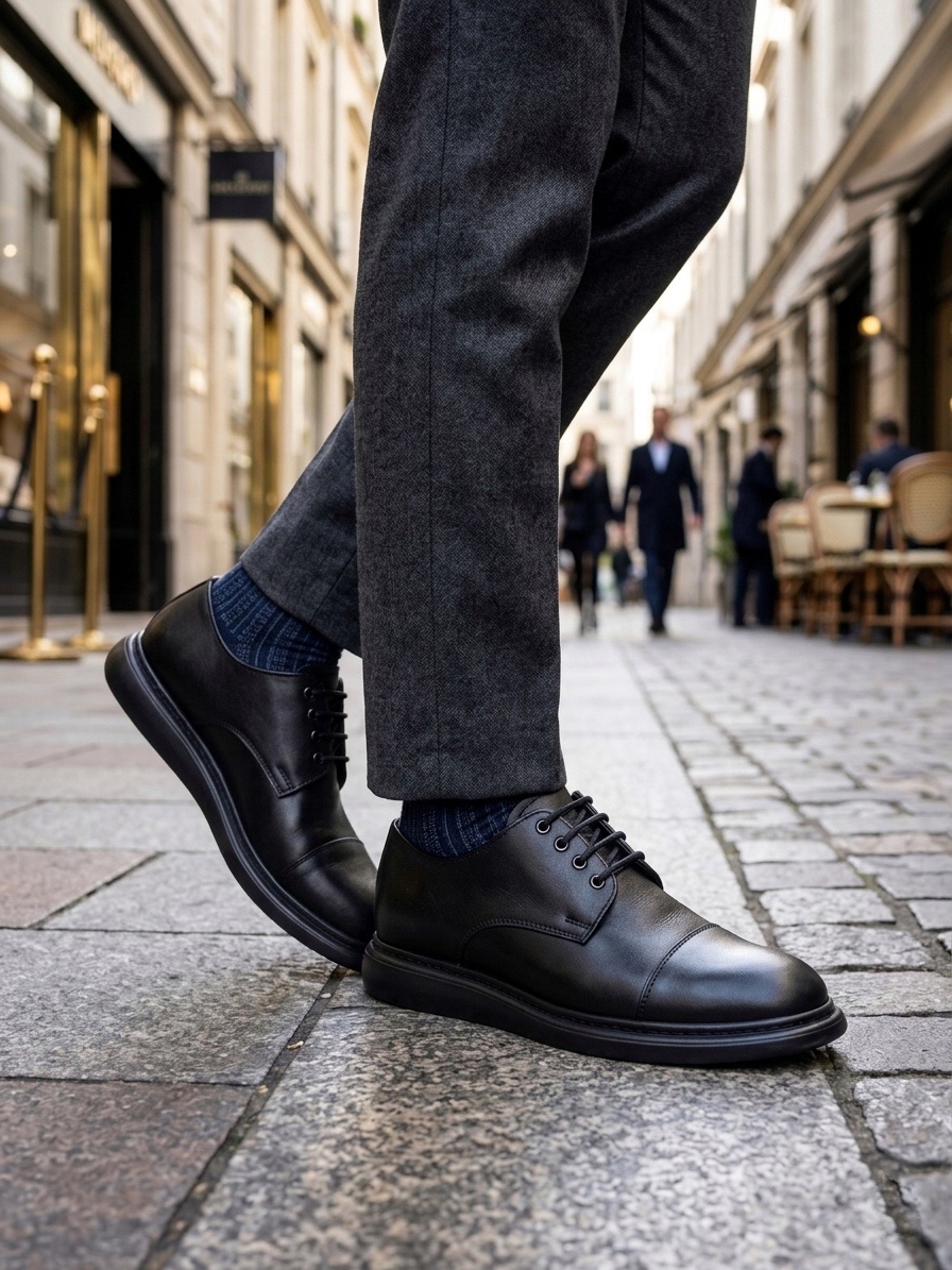 Marka BOA BA0003 Siyah Kapaklı Burun Bağcıklı Erkek Oxford Ayakkabı