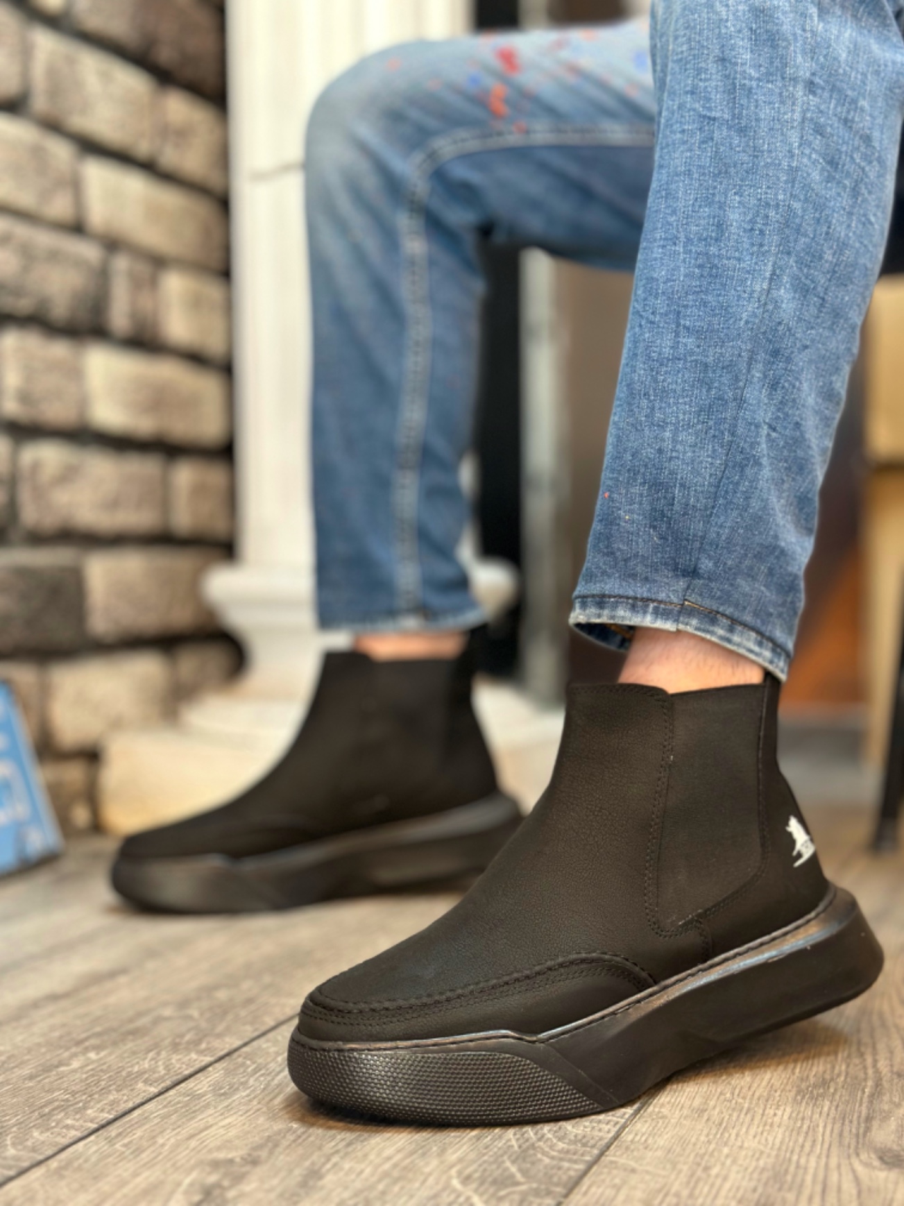 BA0150 Bağcıksız Bantlı Erkek Yüksek Taban Yeni Siyah Taban Spor Bot