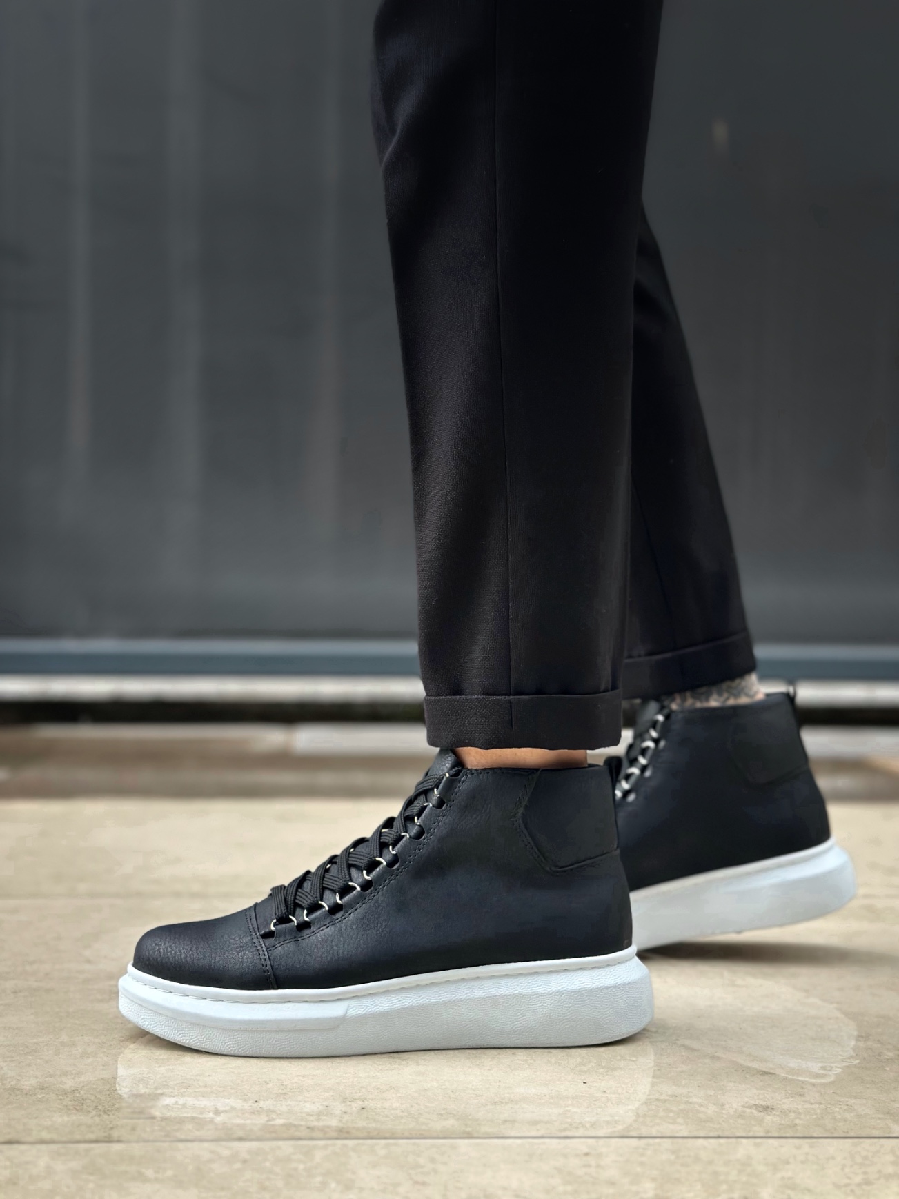 Marka BOA BA0713 Bağcıklı Yüksek Siyah Beyaz Taban Erkek Tarz Spor Bot