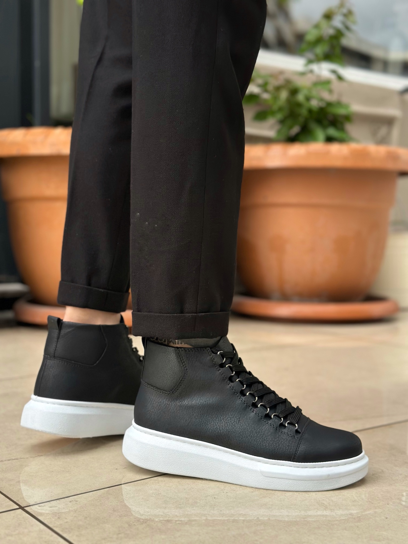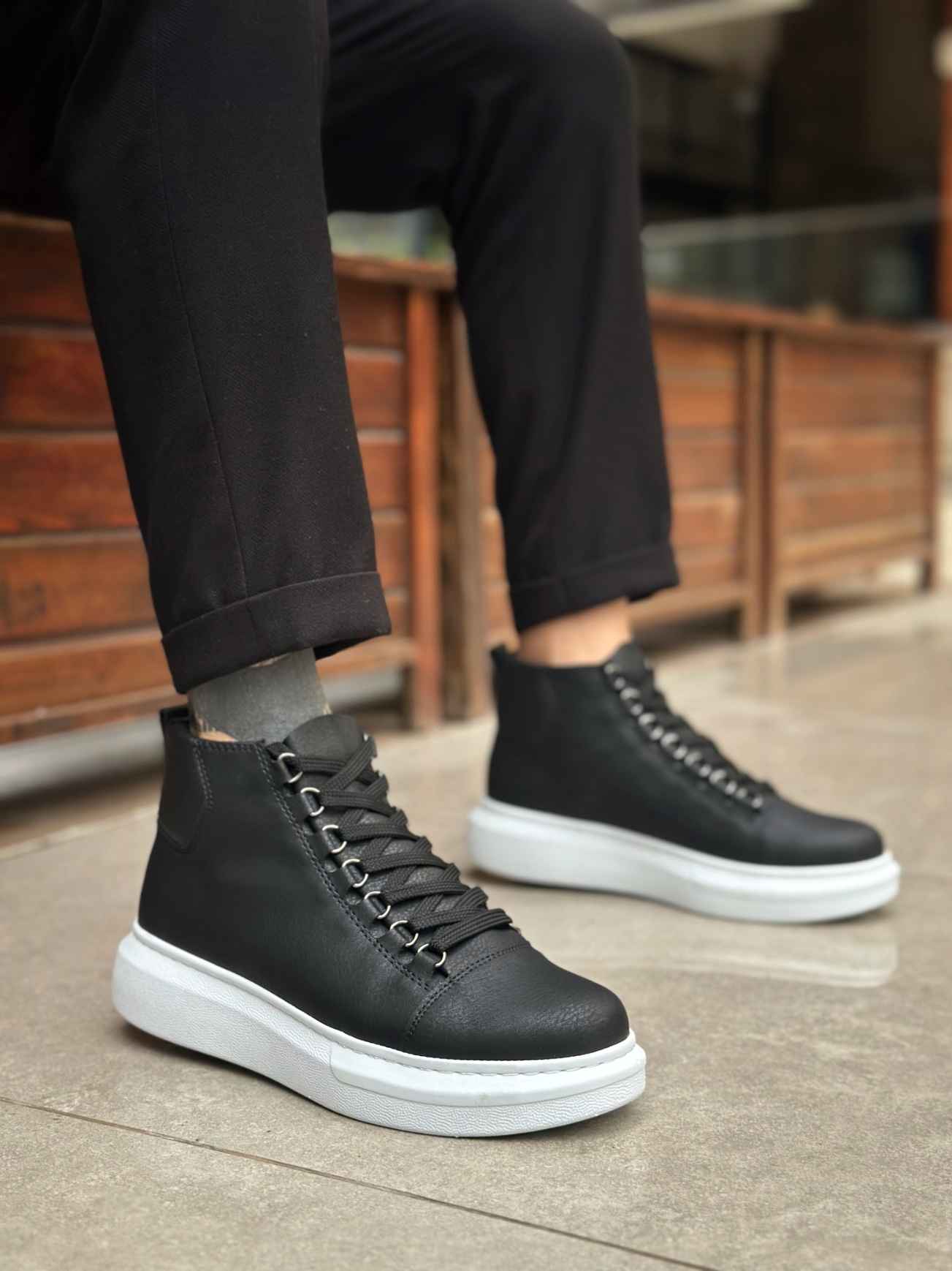 BA0713 Bağcıklı Yüksek Siyah Beyaz Taban Erkek Tarz Spor Bot