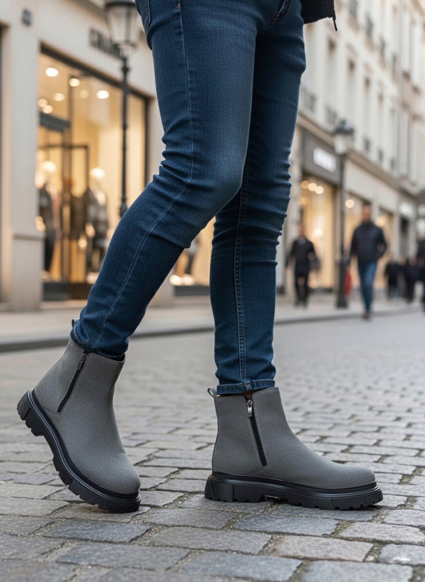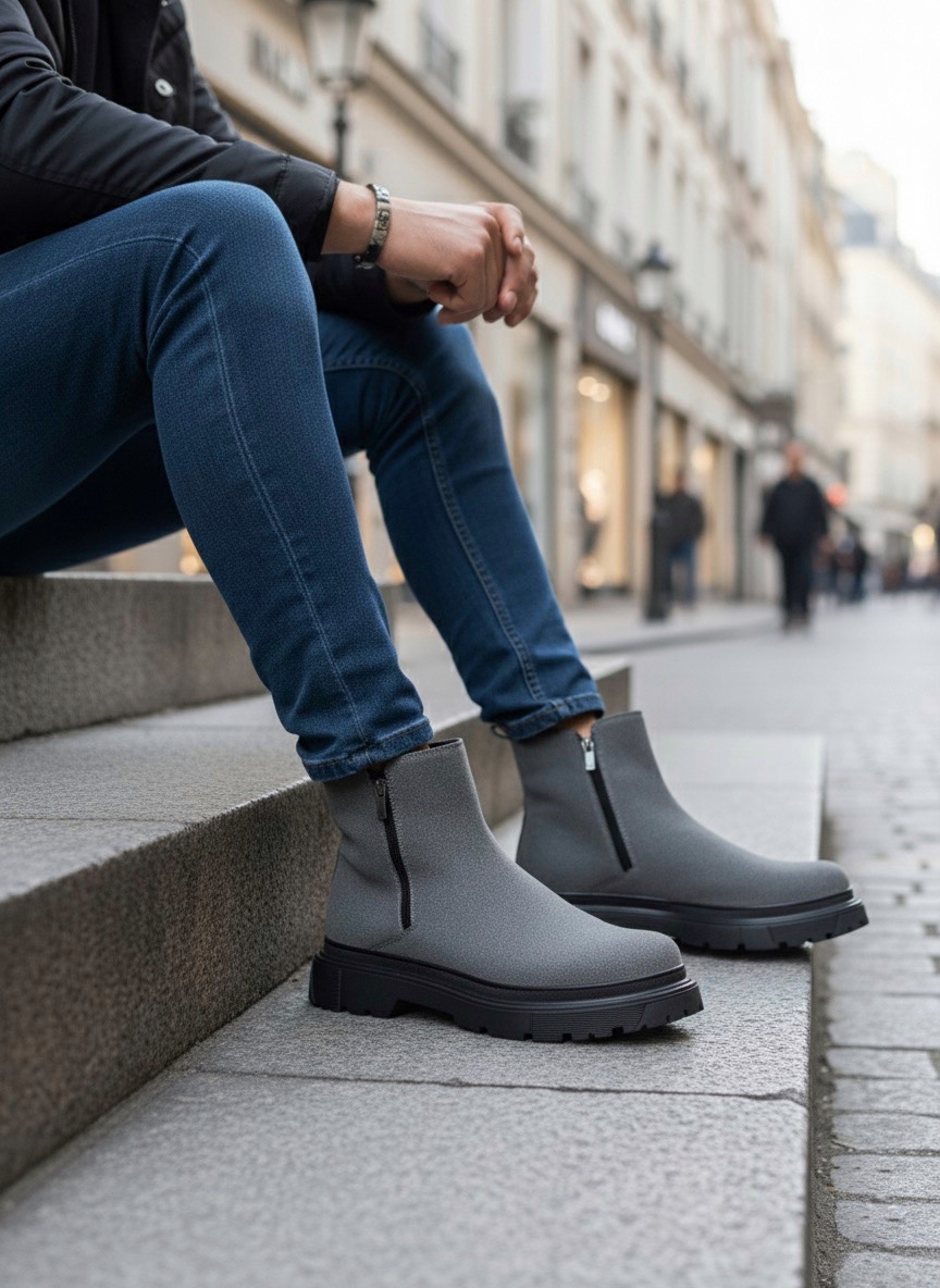 BA0777 Süet Füme Çift Fermuarlı Erkek Yarım Bilek Bot