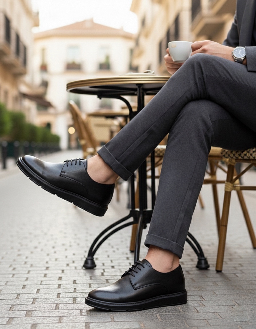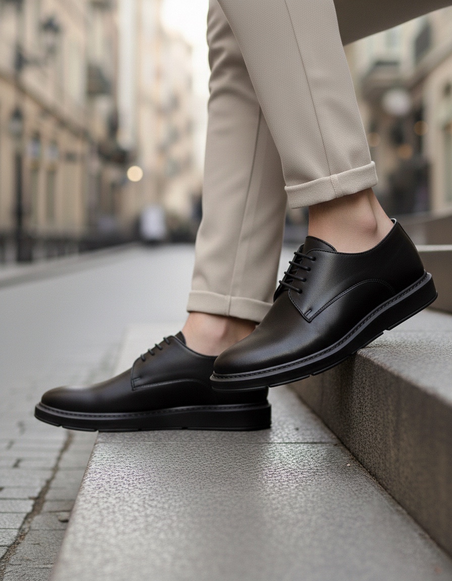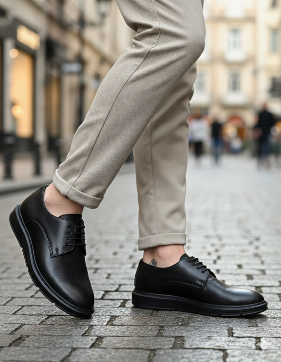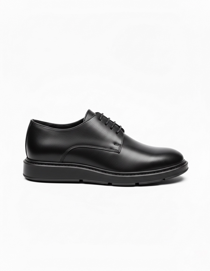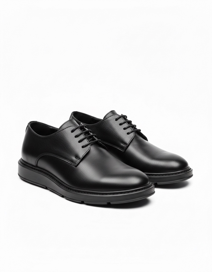 BA0003 Bağcıklı Klasik Siyah Yüksek Siyah Taban Casual Erkek Ayakkabı