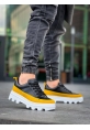 KB-056 Siyah Sarı Detaylı Beyaz Yüksek Taban Günlük Spor Ayakkabı