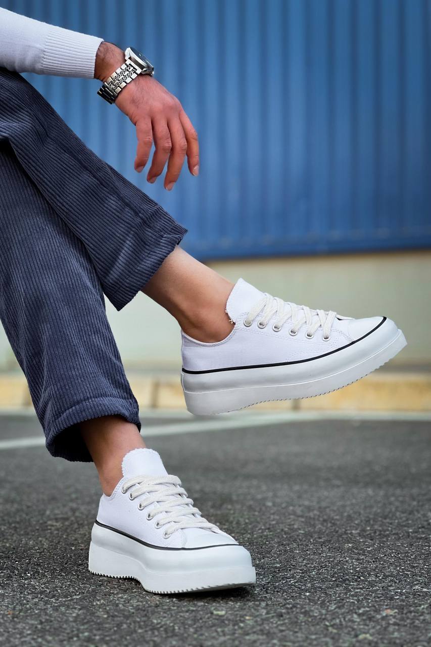 KB-CX-3 Kısa Beyaz Keten Beyaz Yüksek Taban Spor Ayakkabı