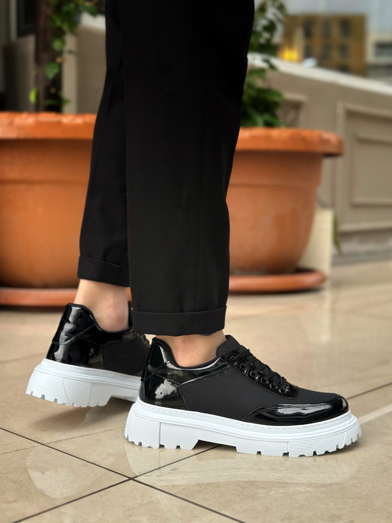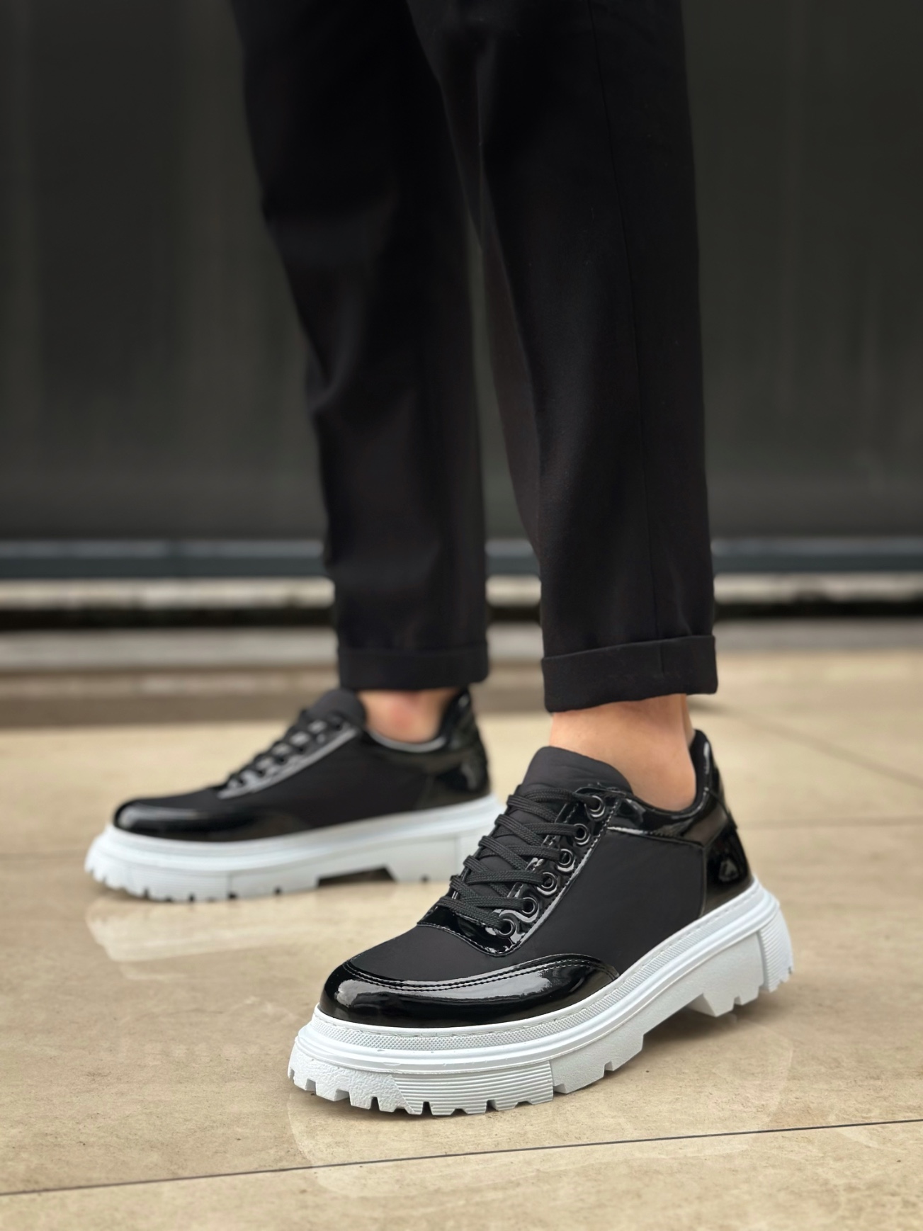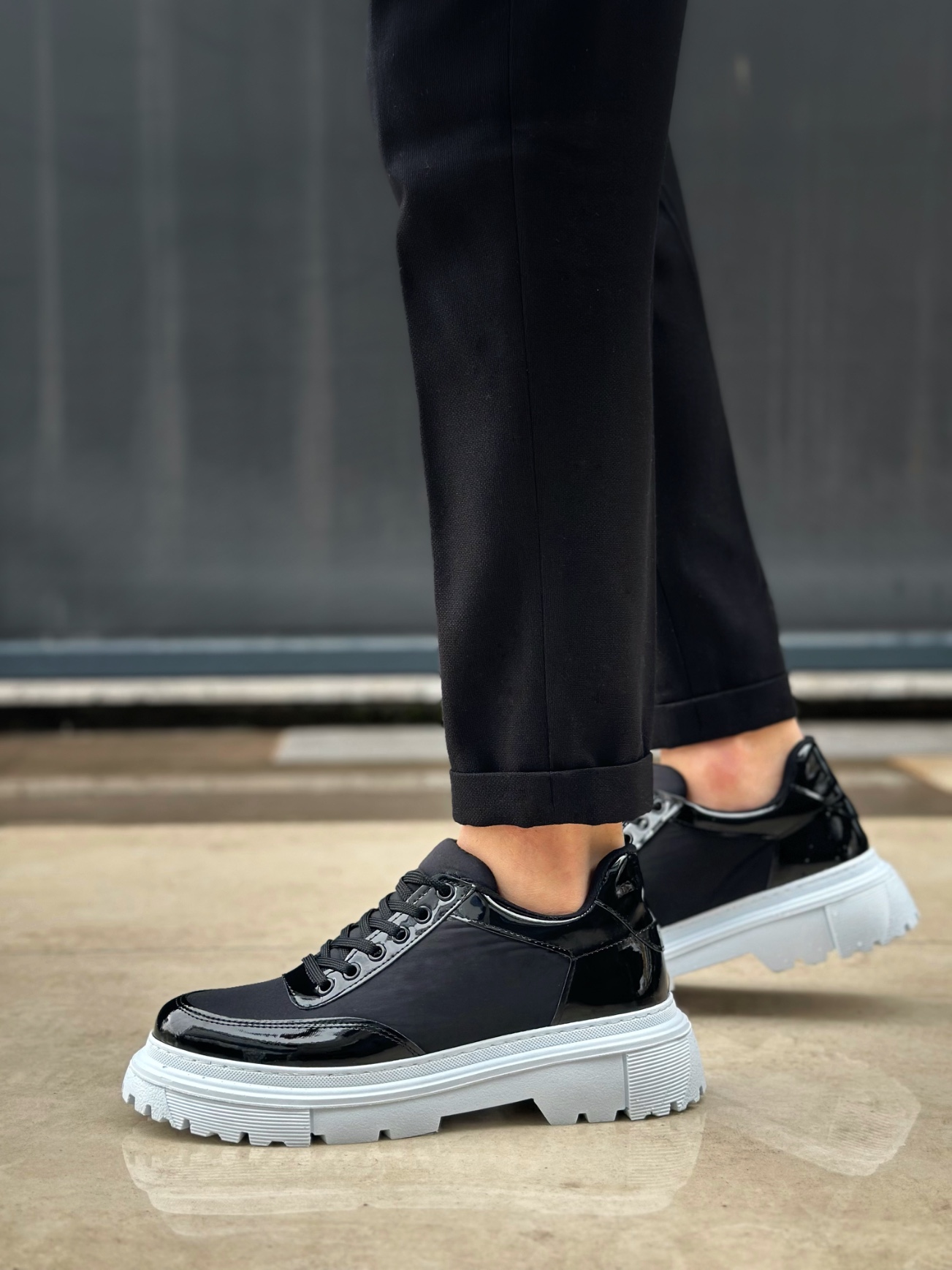 BA0243 Bağcıklı Rugan Paraşüt Detaylı Yüksek Taban Siyah Erkek Ayakkabı