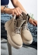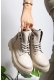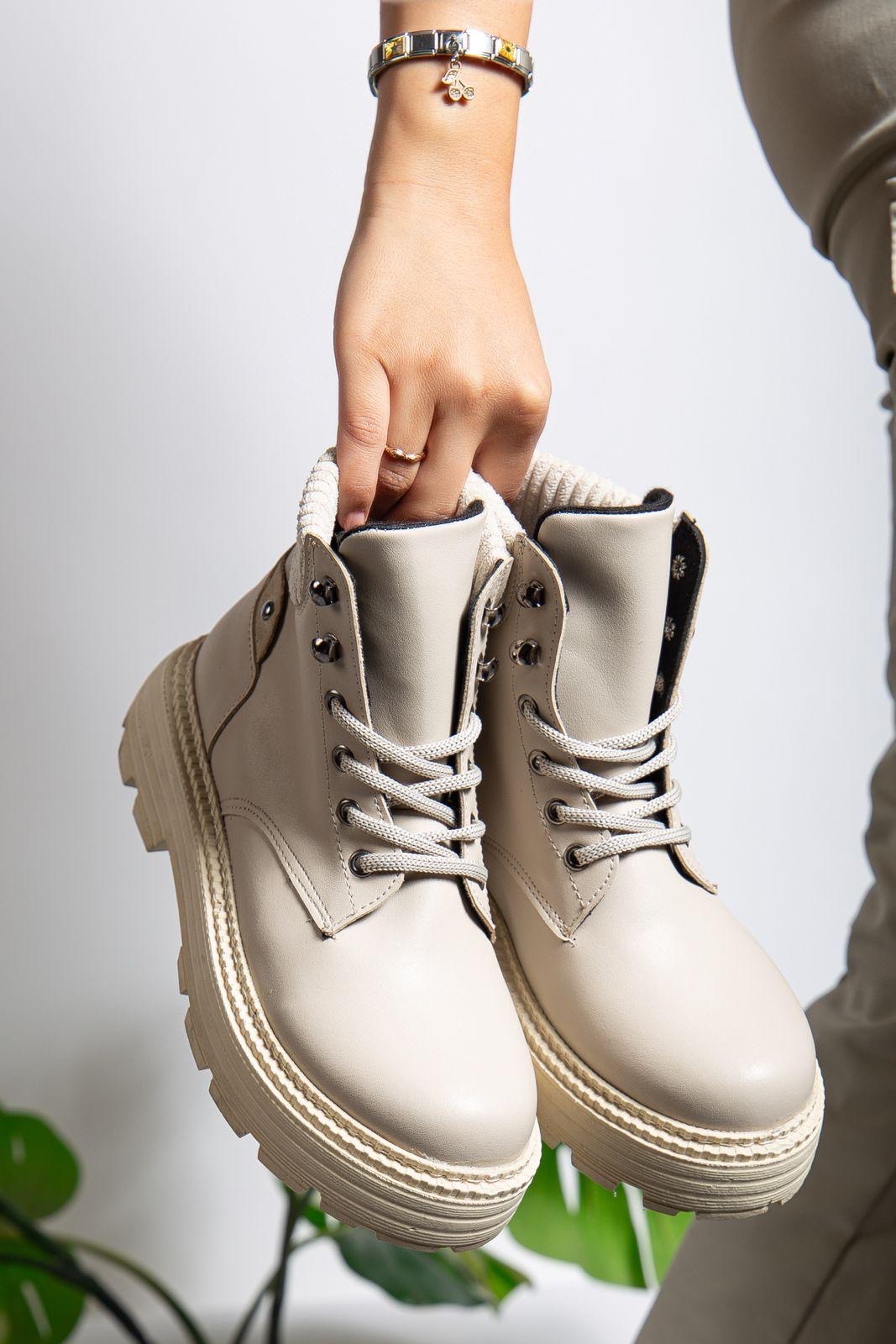 Krem Cilt Bağcıklı Yüksek Taban Kadın Bot