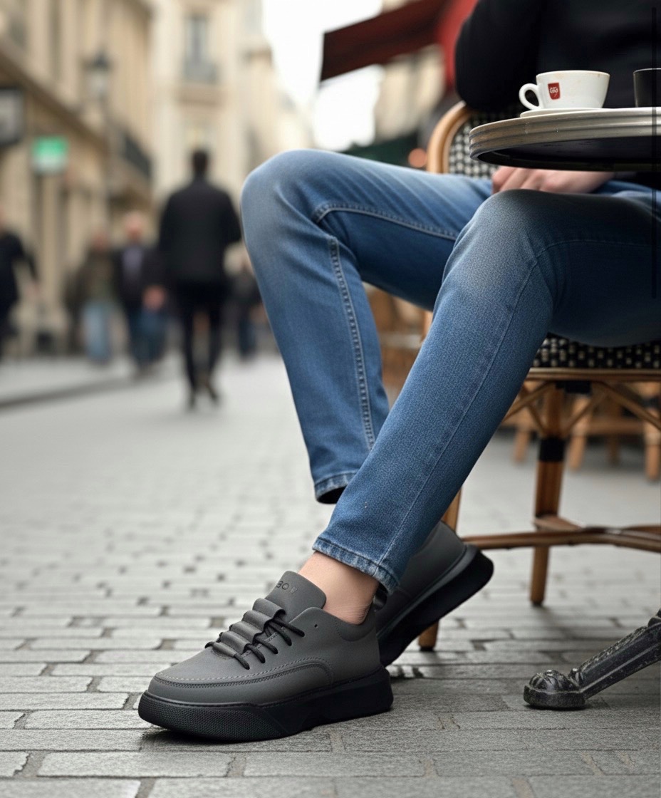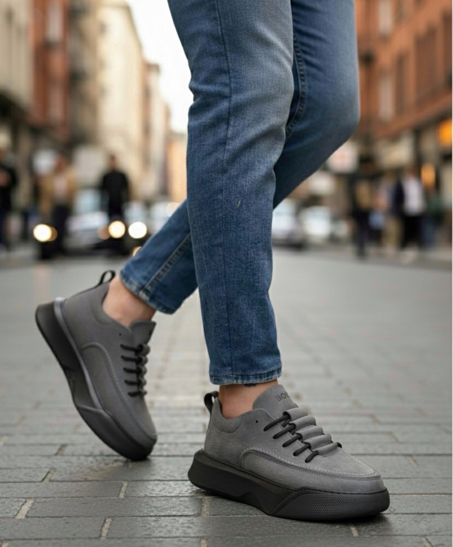Spor BA0332 Merdiven Desen Bağcıklı Erkek Yüksek Taban Füme Cilt Spor Ayakkabı