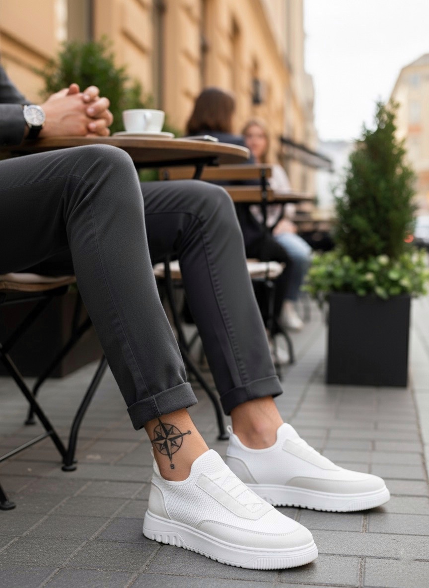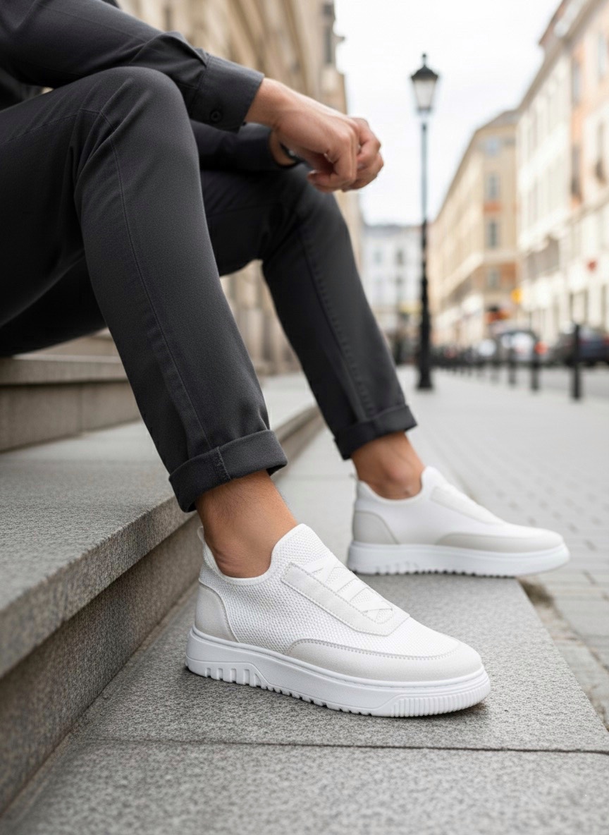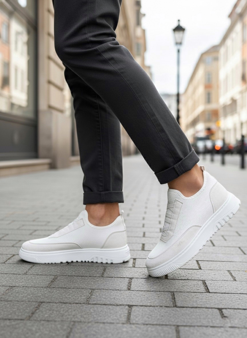 Spor BA0911 Özel Örme Triko Deri Tozu Detaylı Beyaz Günlük Spor Ayakkabı