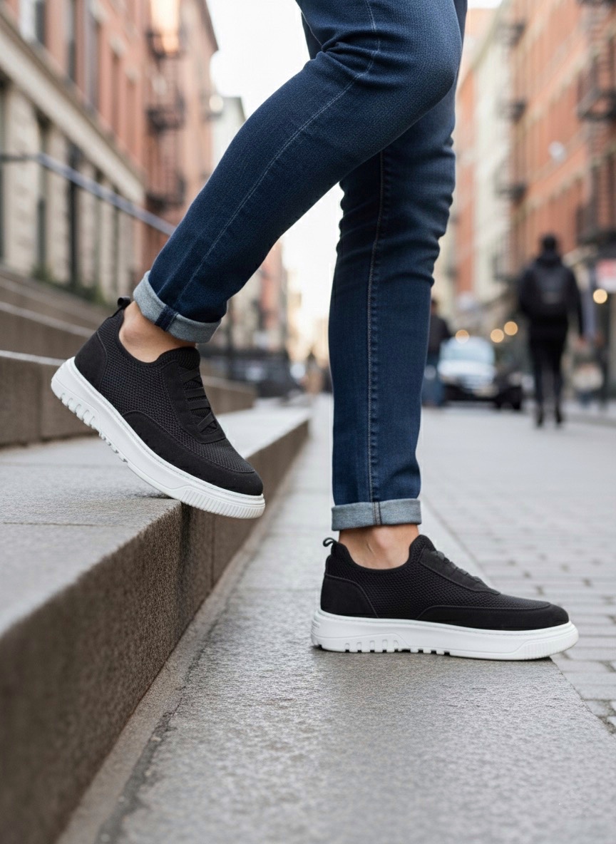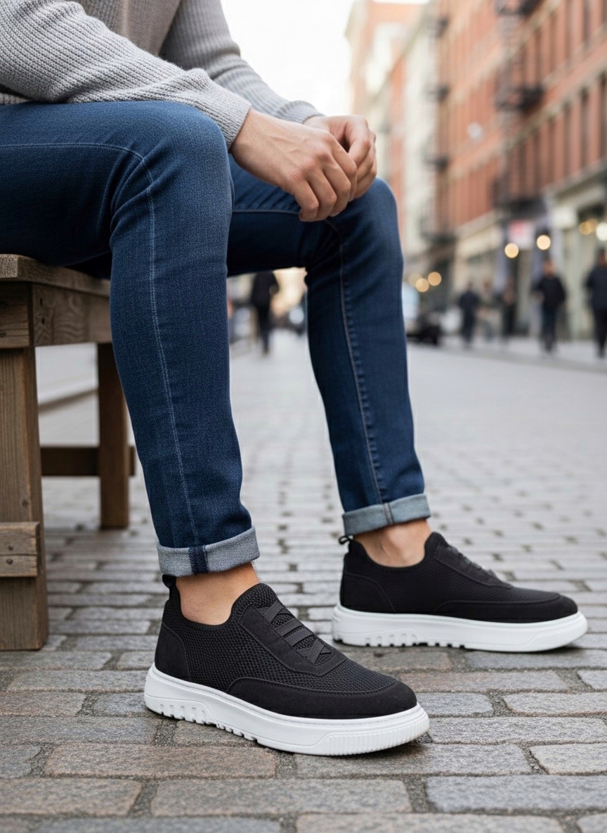 Spor BA0911 Özel Örme Triko Deri Tozu Detaylı Siyah Günlük Spor Ayakkabı
