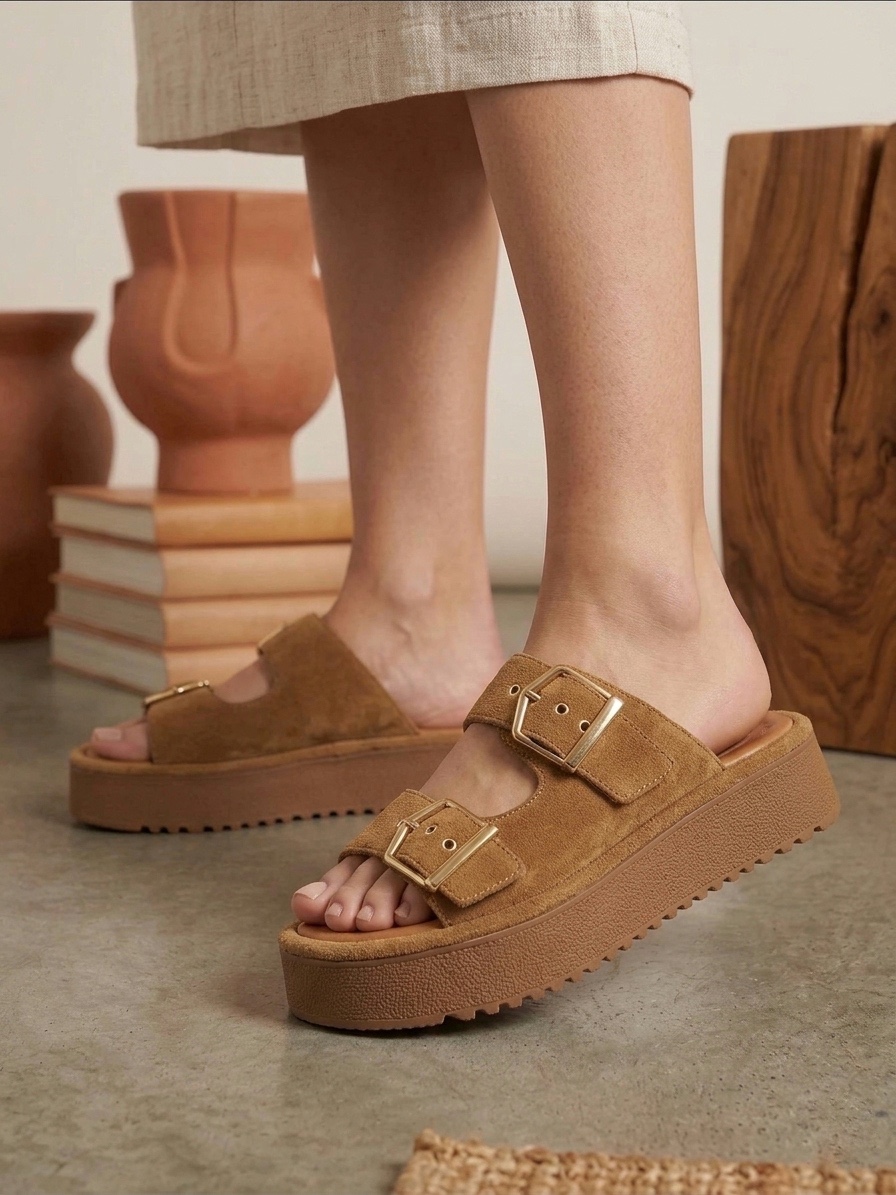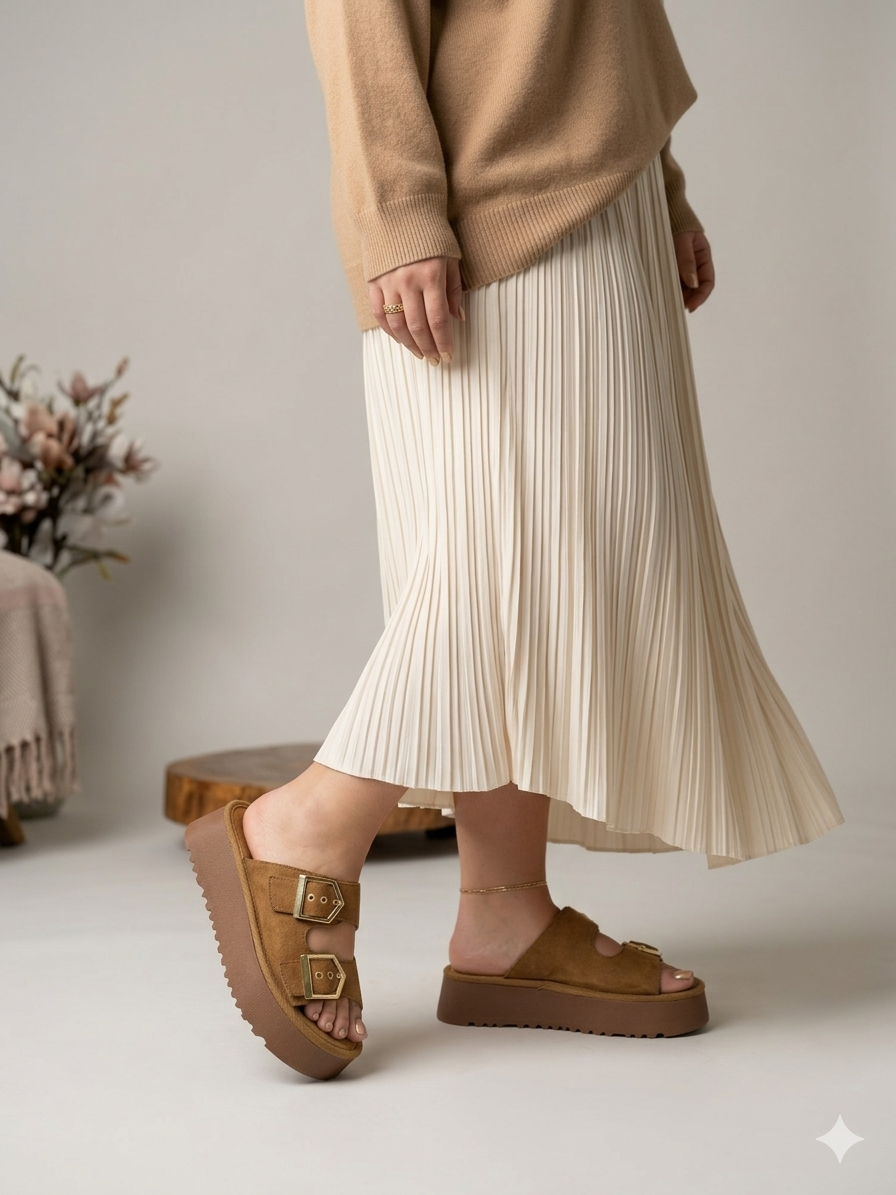 Terlik Yazlık Kadın Taba Platform Taban Tokalı Terlik
