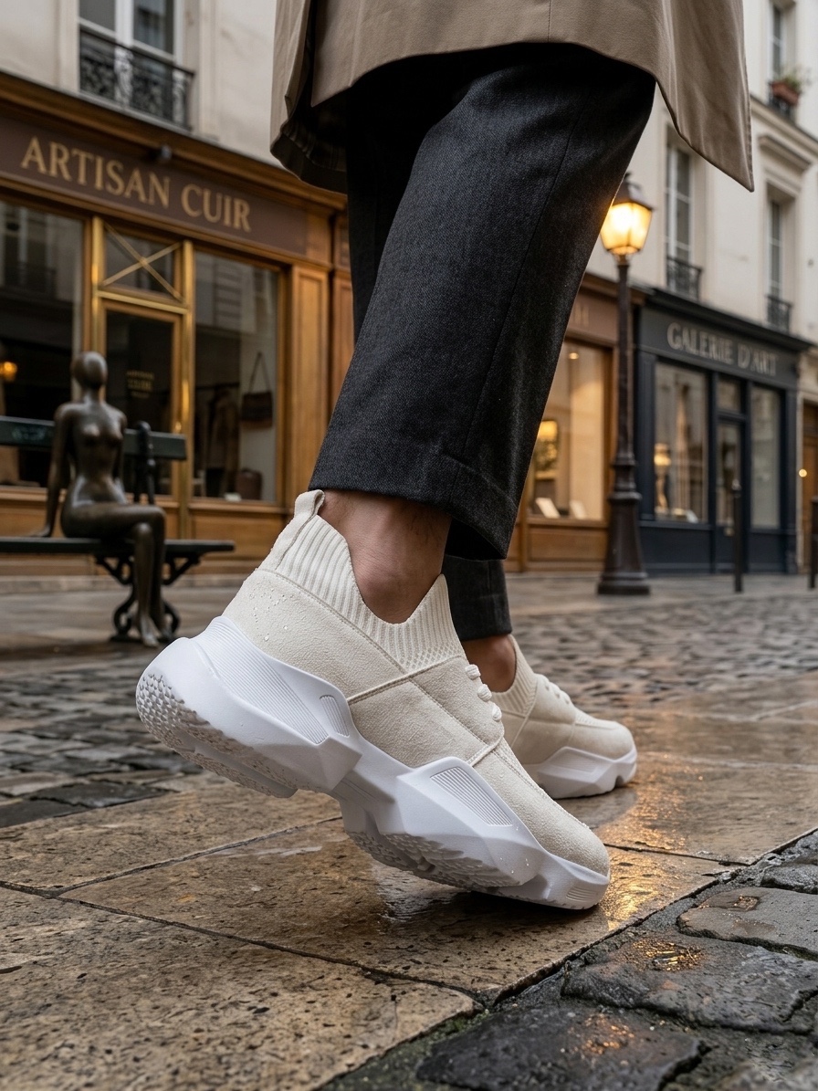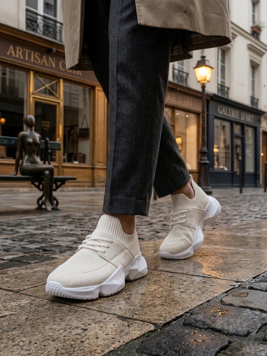 Yeni Sezon 403 Yumuşak Triko Dokulu Yüksek Taban Beyaz Spor Ayakkabı