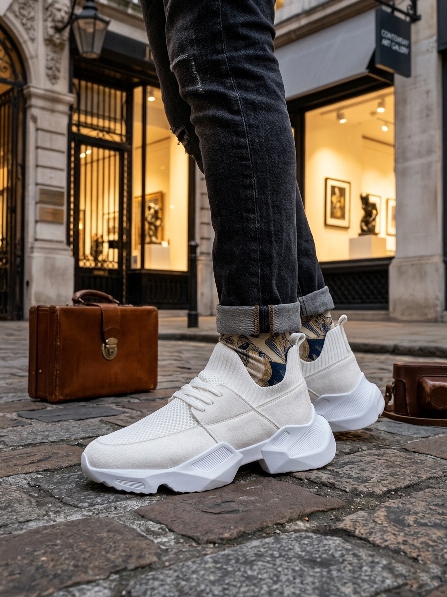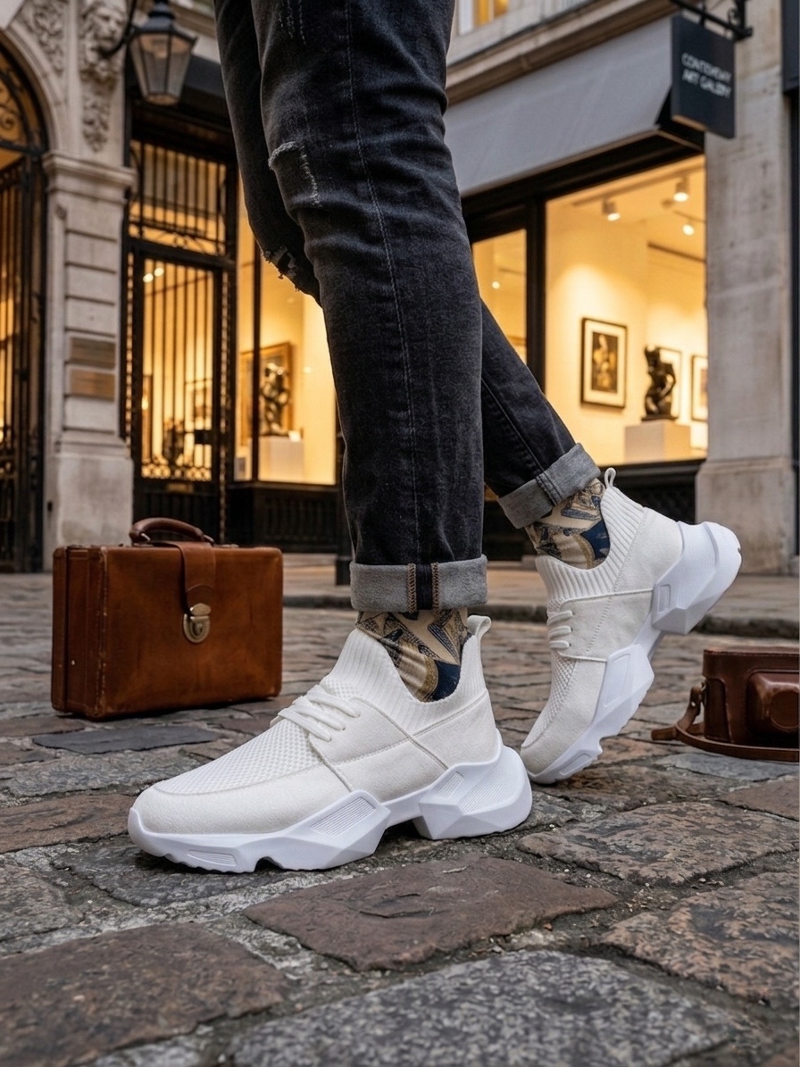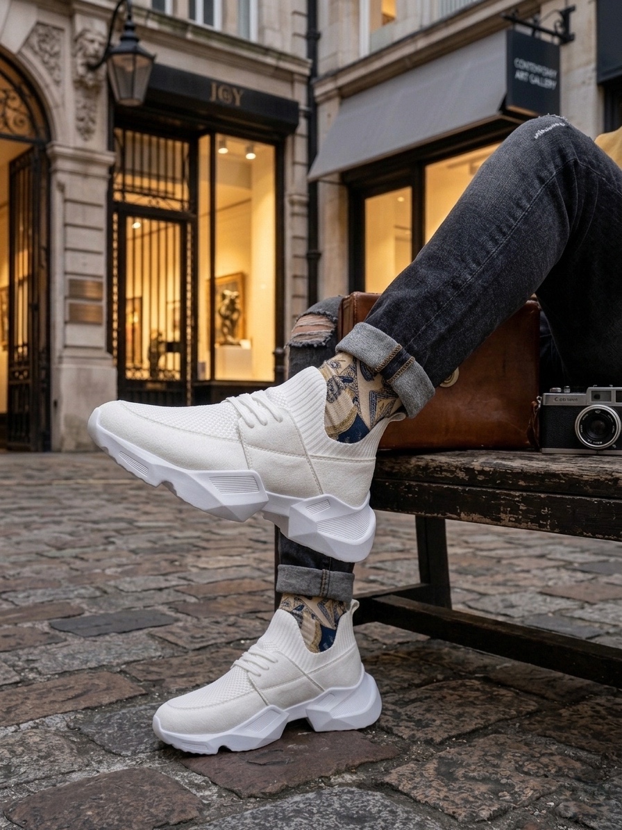 403 Yumuşak Triko Dokulu Yüksek Taban Beyaz Spor Ayakkabı