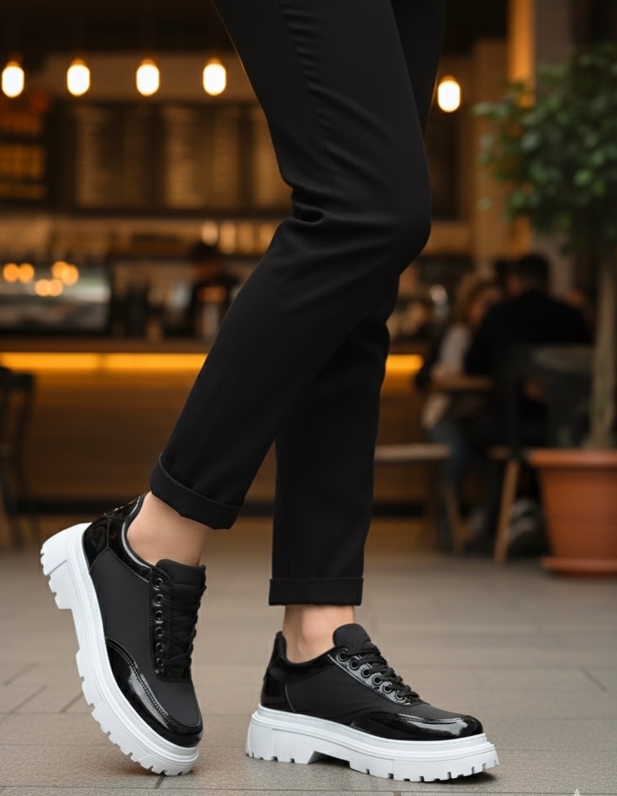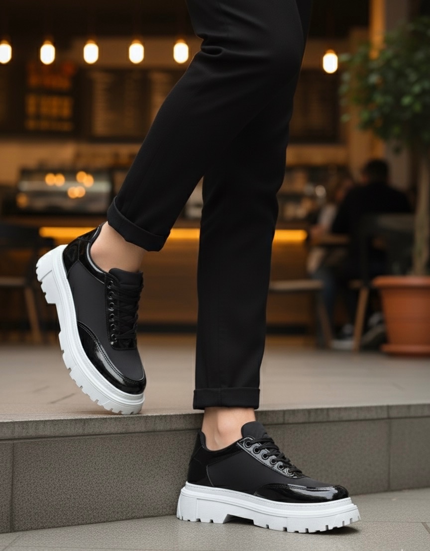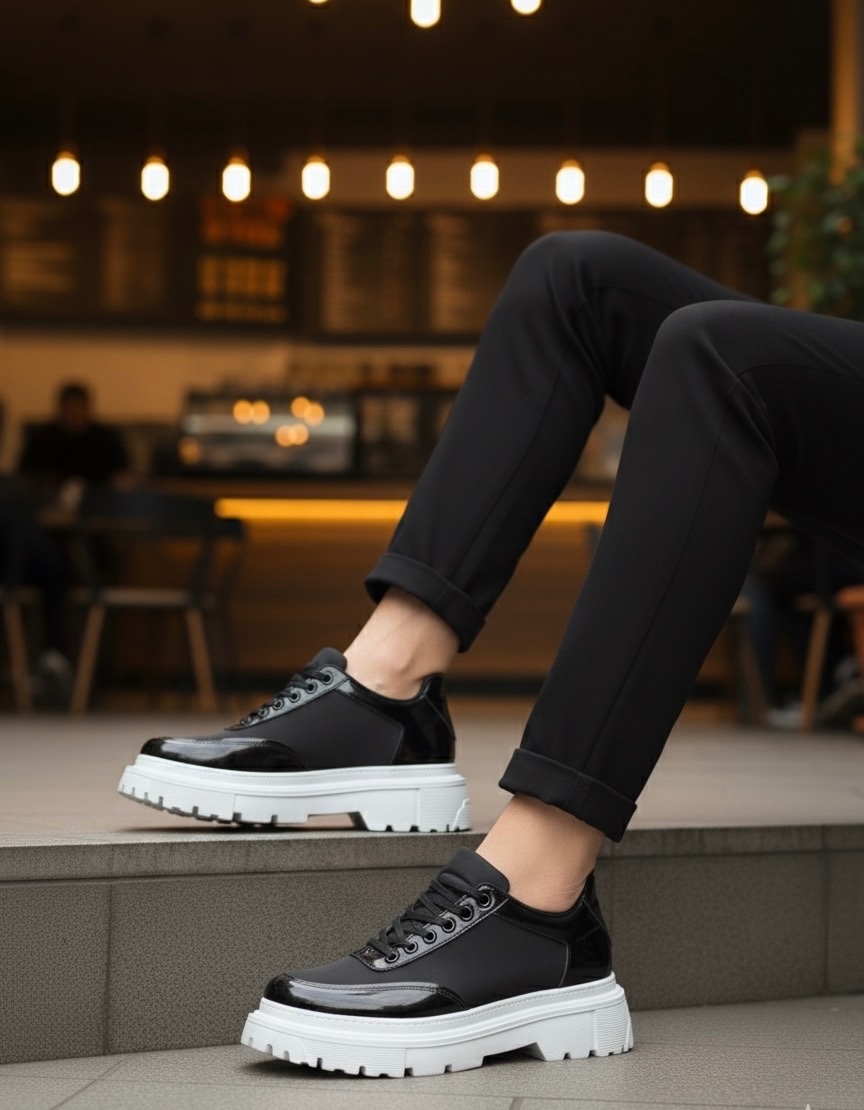 BA0243 Bağcıklı Rugan Paraşüt Detaylı Yüksek Taban Siyah Erkek Ayakkabı