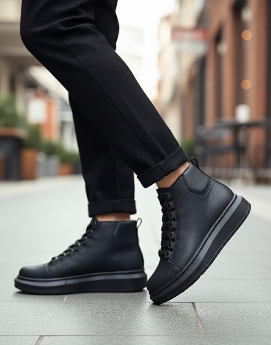 BA0713 Bağcıklı Yüksek Siyah Taban Erkek Tarz Spor Bot
