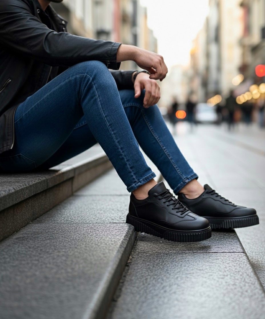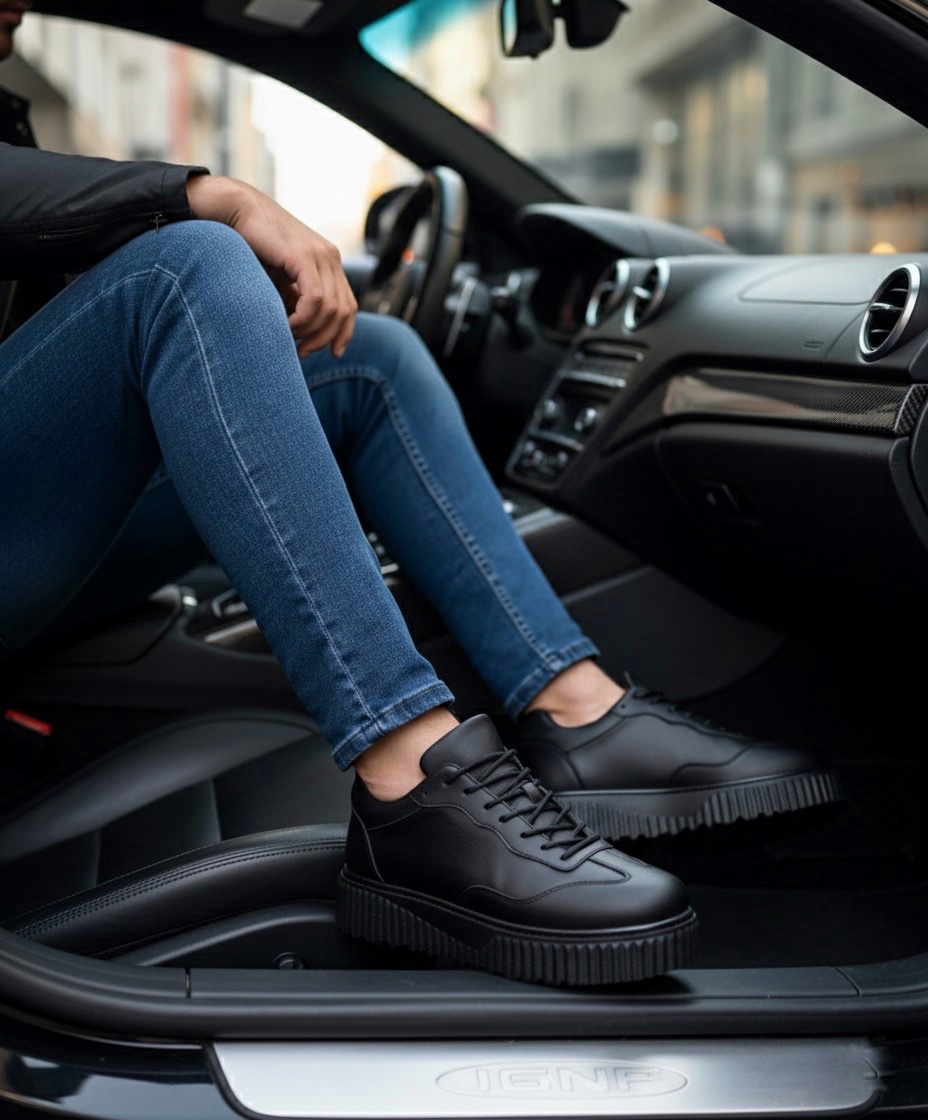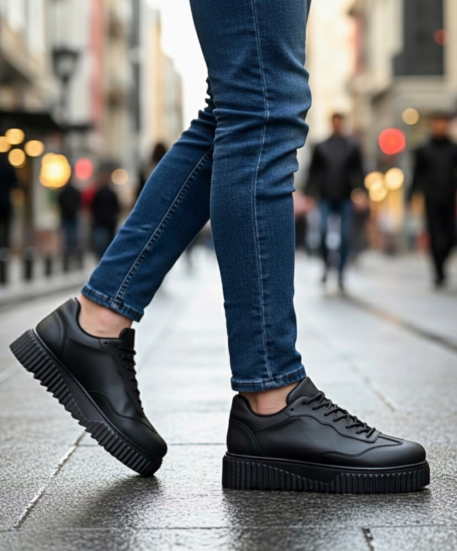 Yeni Sezon BA0802 BOA Siyah Renk Siyah Yüksek Taban Erkek Günlük Ayakkabı