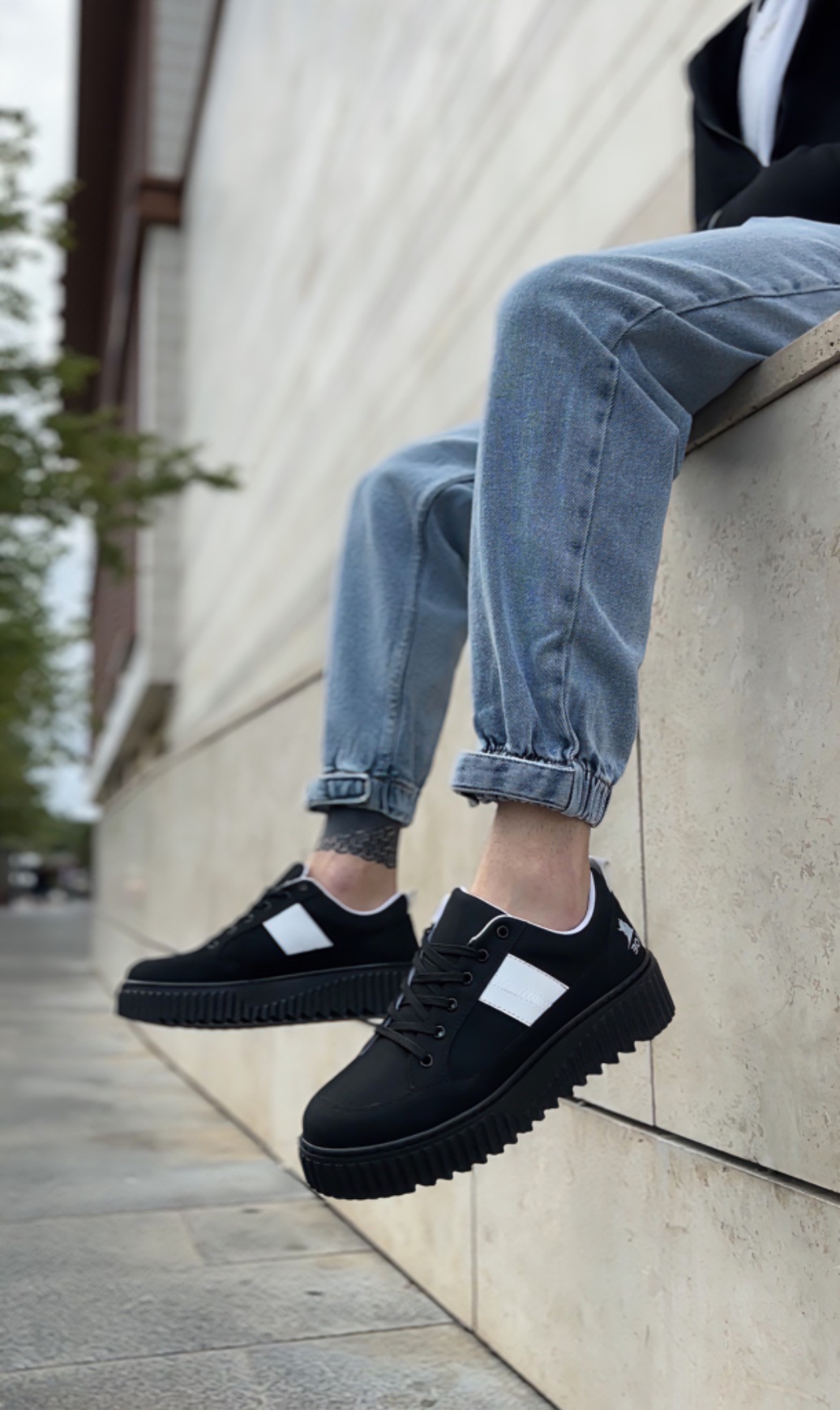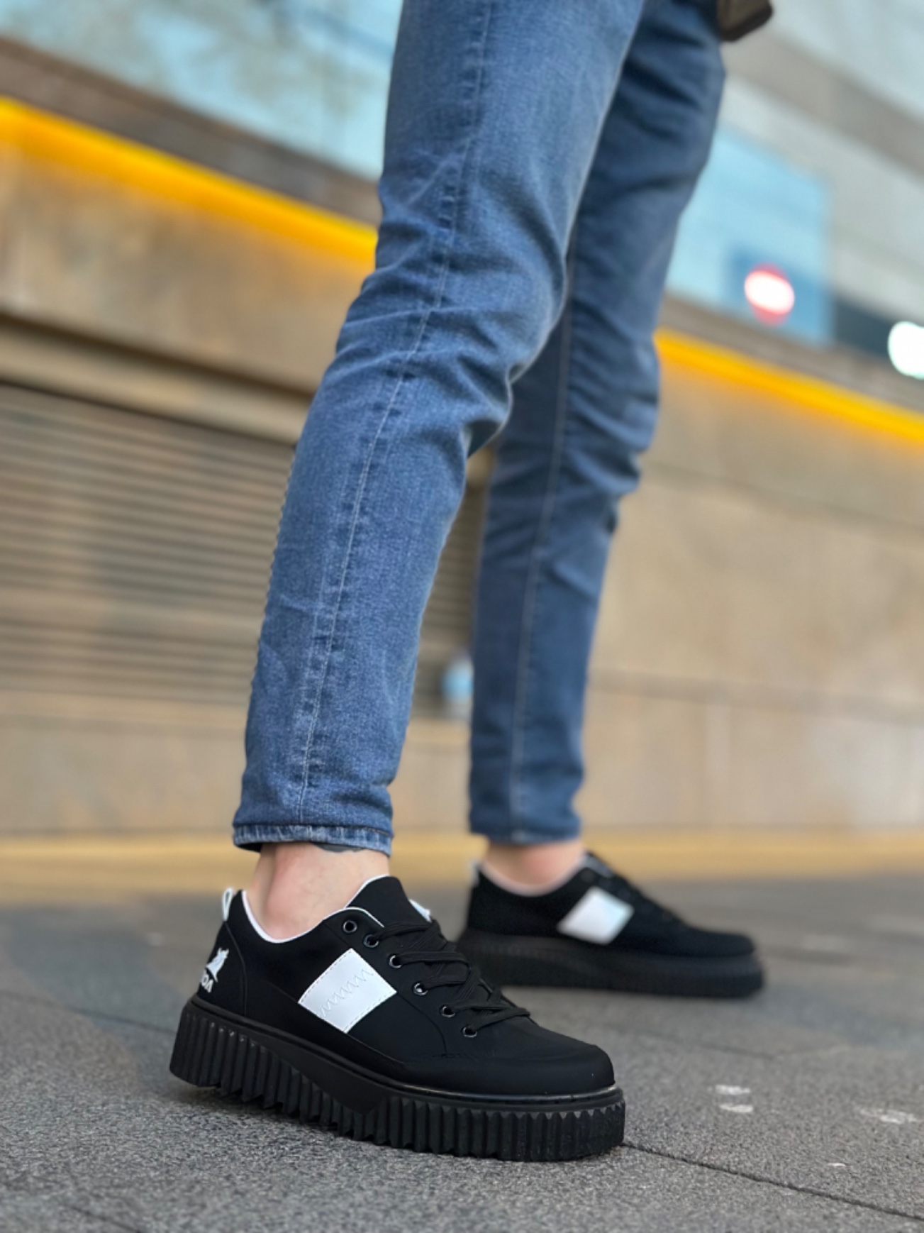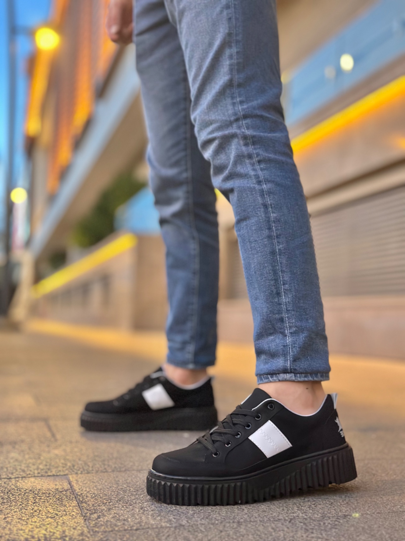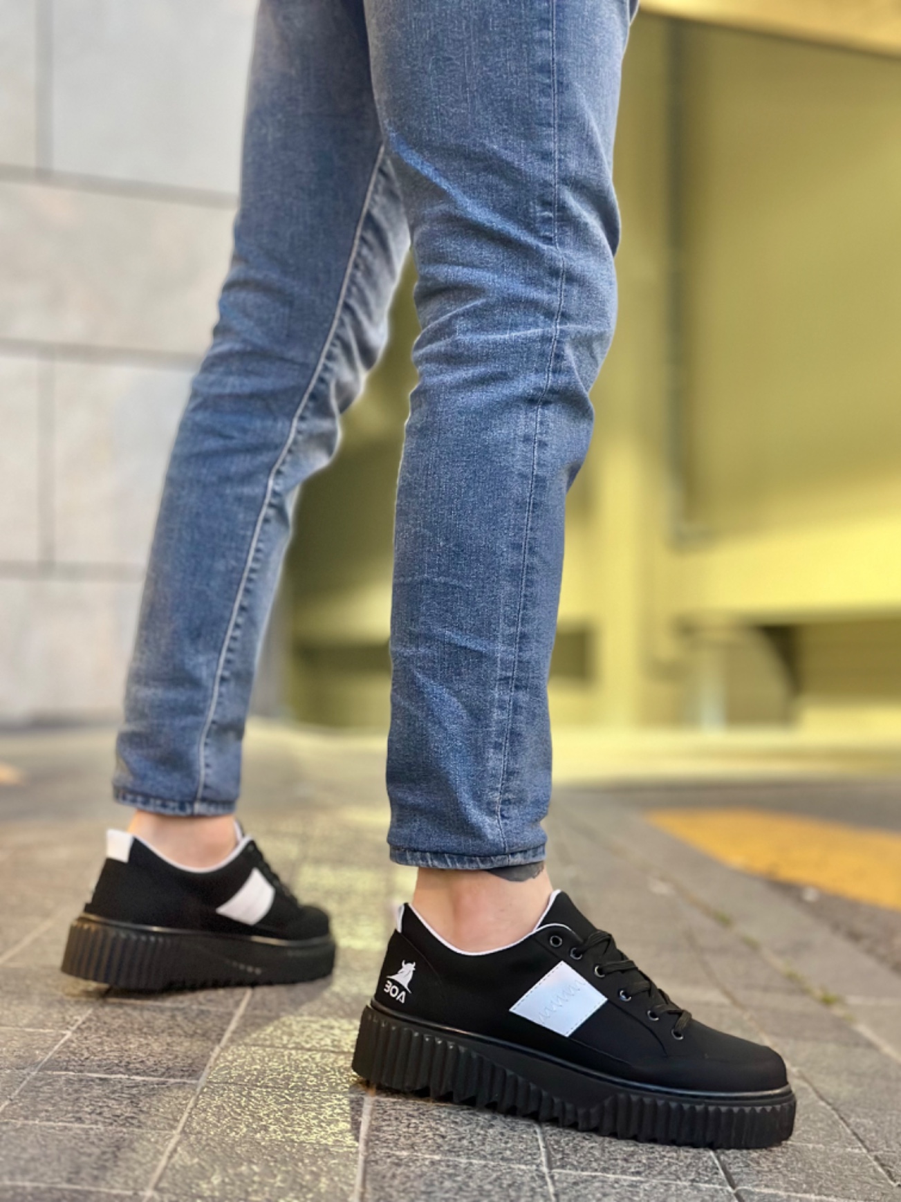 BA0804 BOA Yüksek Siyah Taban Beyaz Detaylı Bağcıklı Erkek Ayakkabı