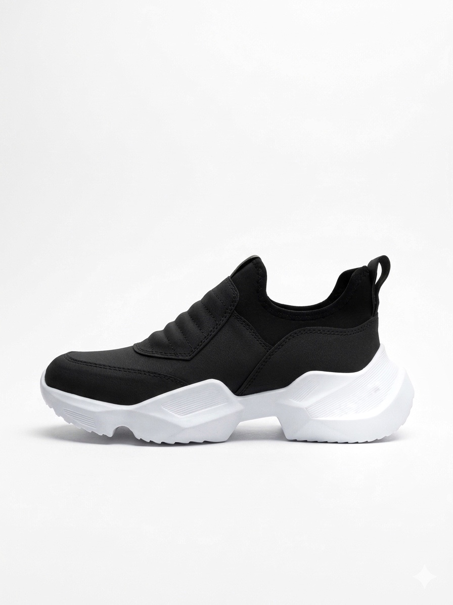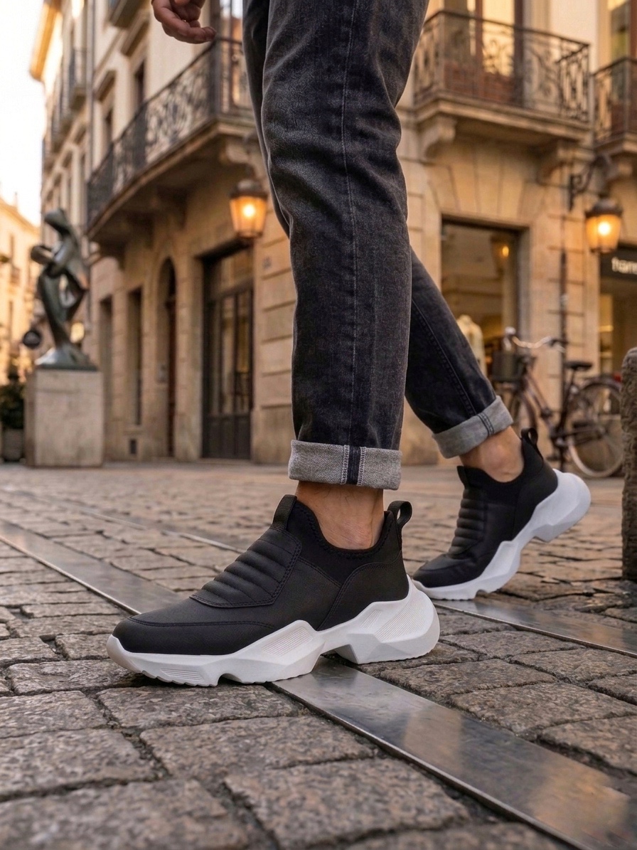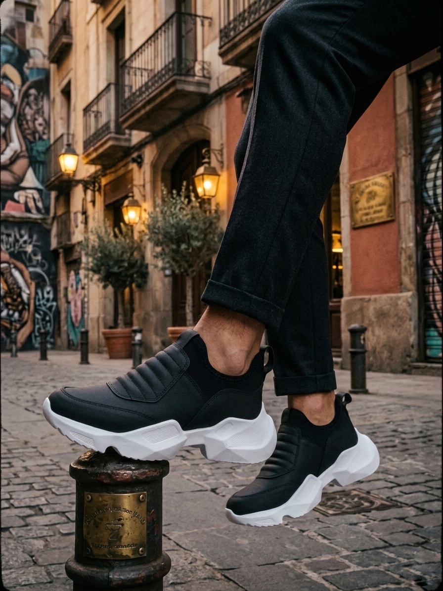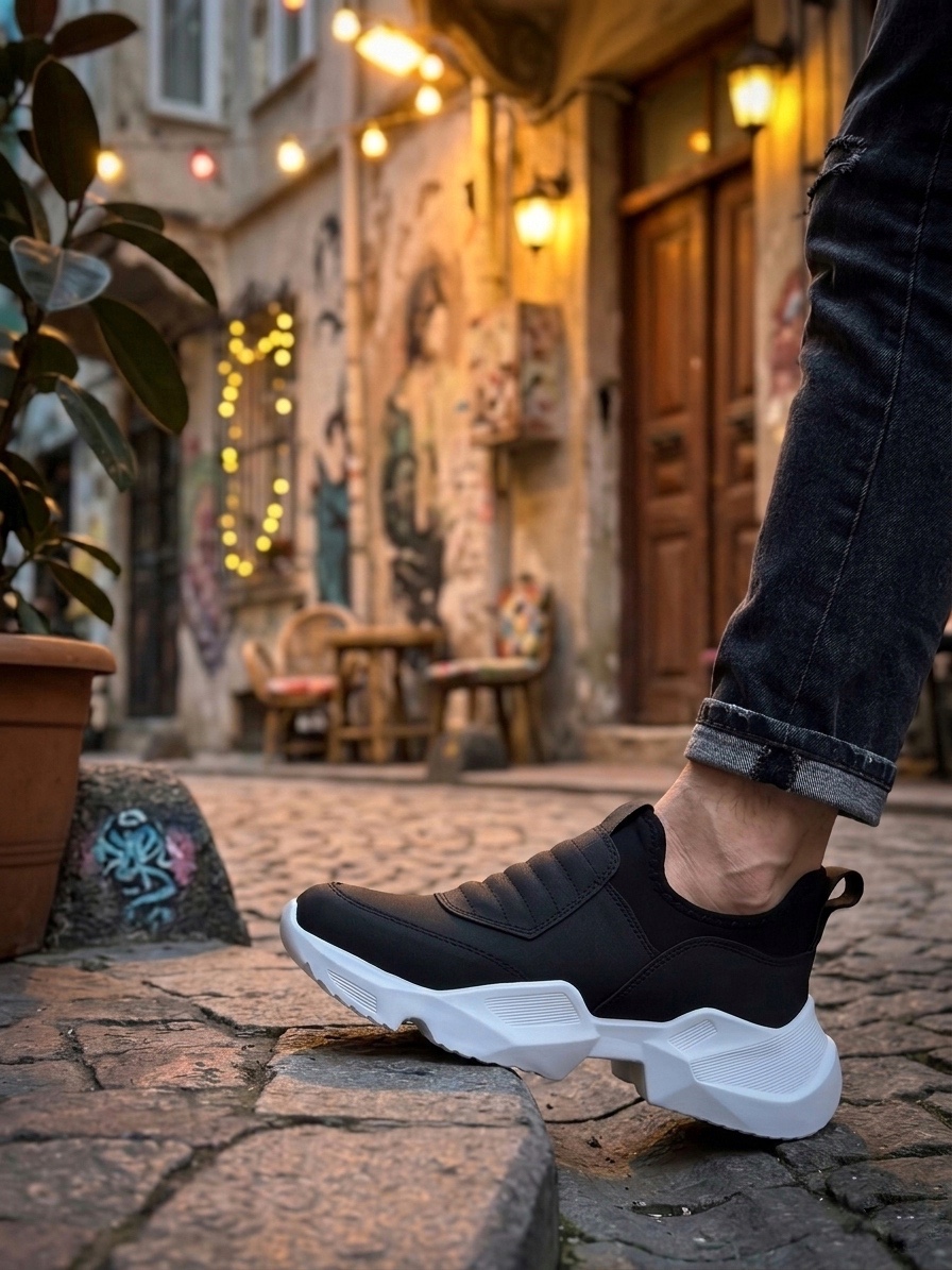 BA0402 Bağcıksız Rahat Yüksek Taban Siyah Erkek Spor Yarım Bilek Bot