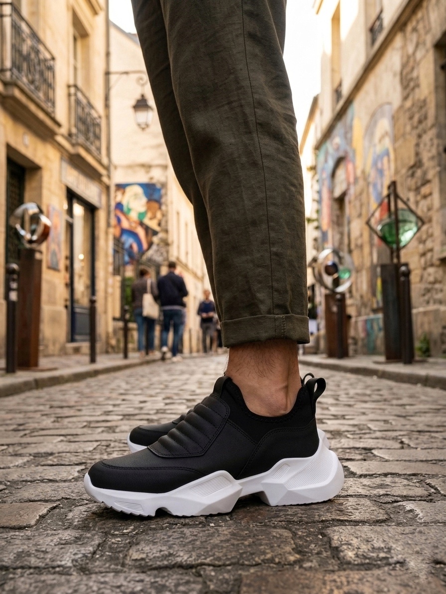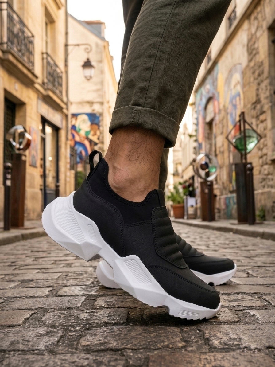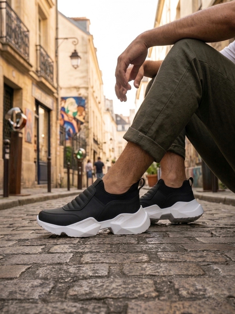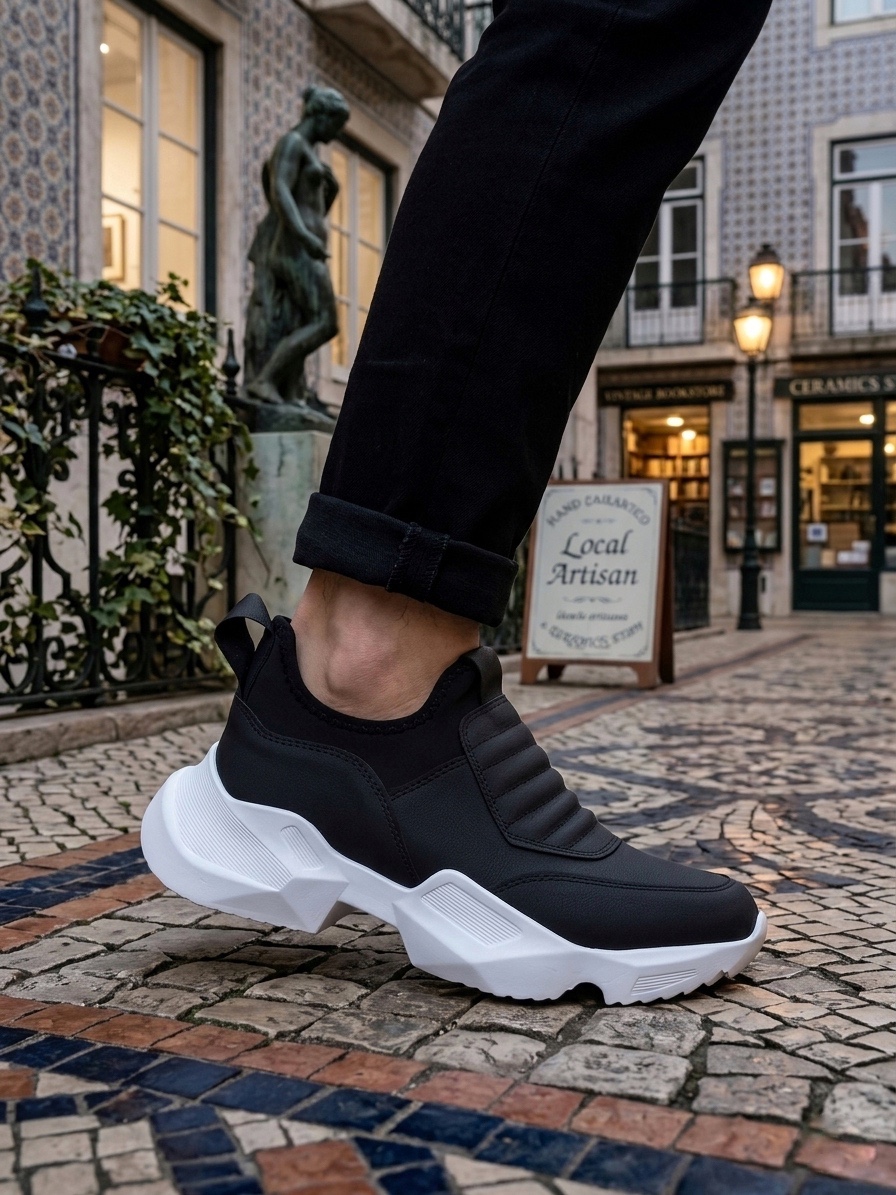 BA0402 Bağcıksız Rahat Yüksek Taban Siyah Erkek Spor Yarım Bilek Bot