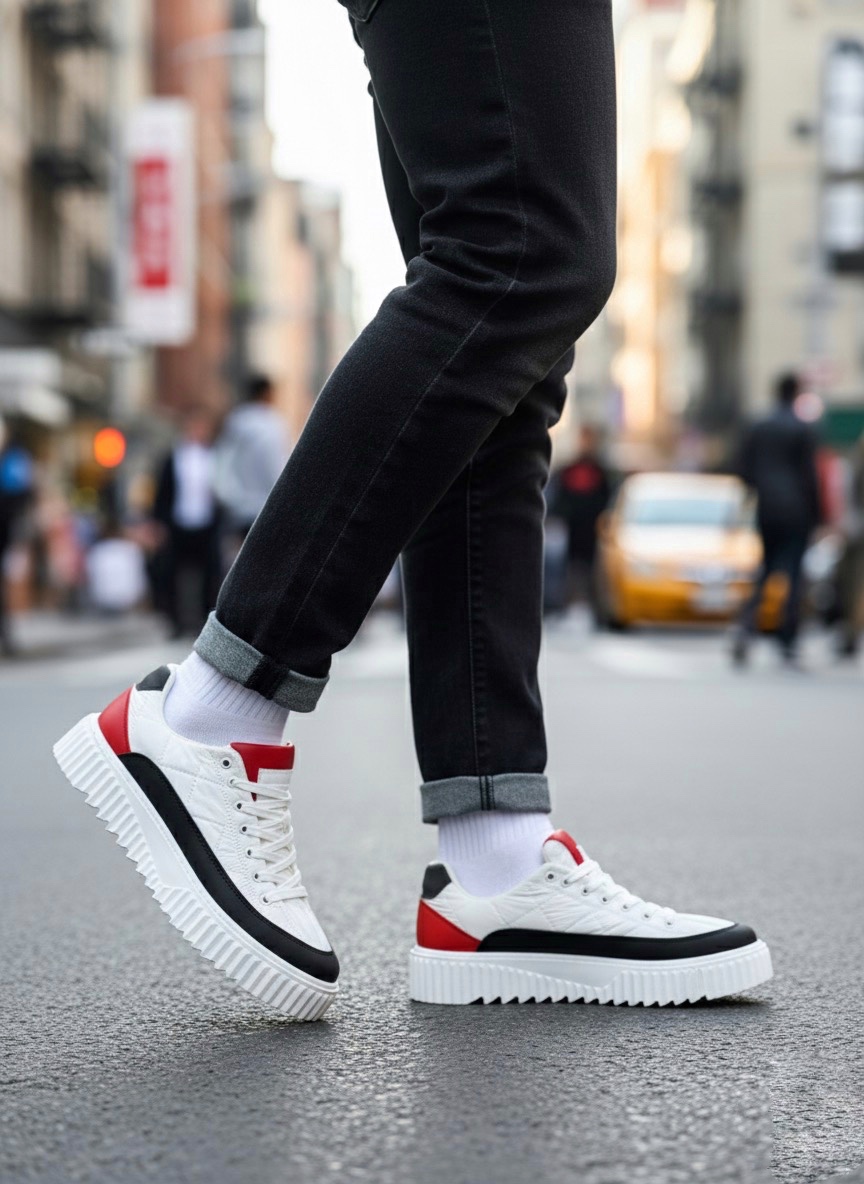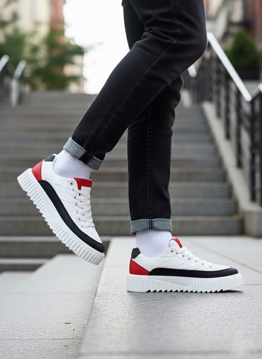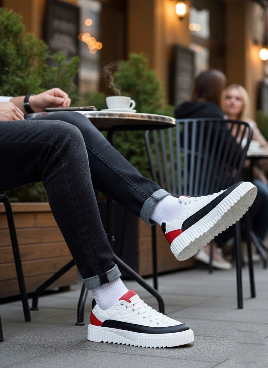 BA0801 BOA Yüksek Taban Beyaz Paraşüt Kumaş Cilt Detaylı Erkek Ayakkabı